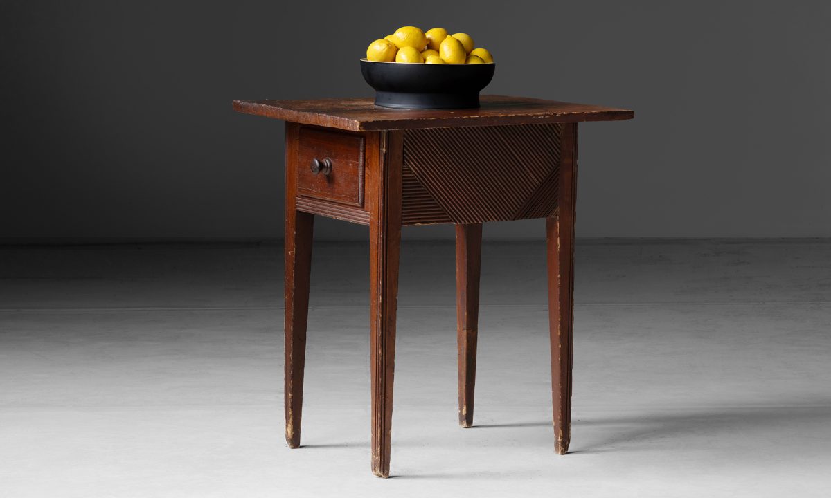 Constructed in yellow pine, single drawer with carved sides.