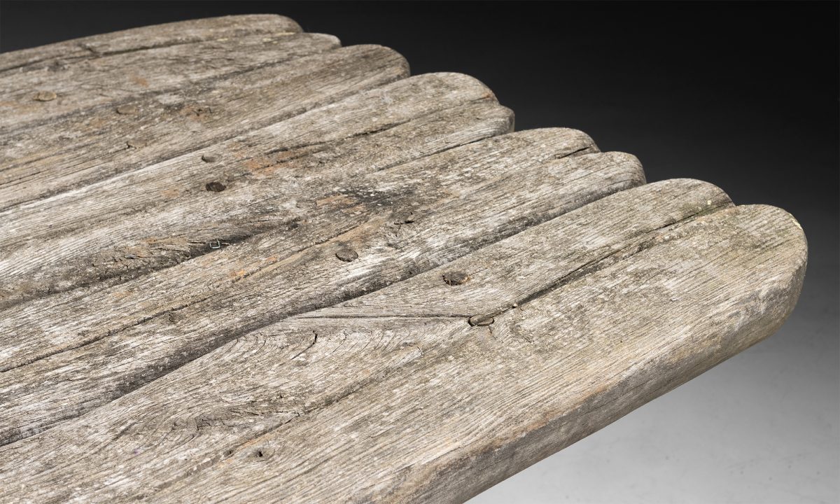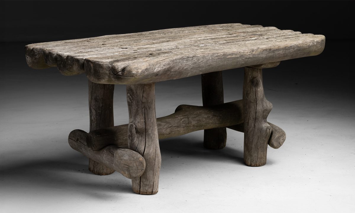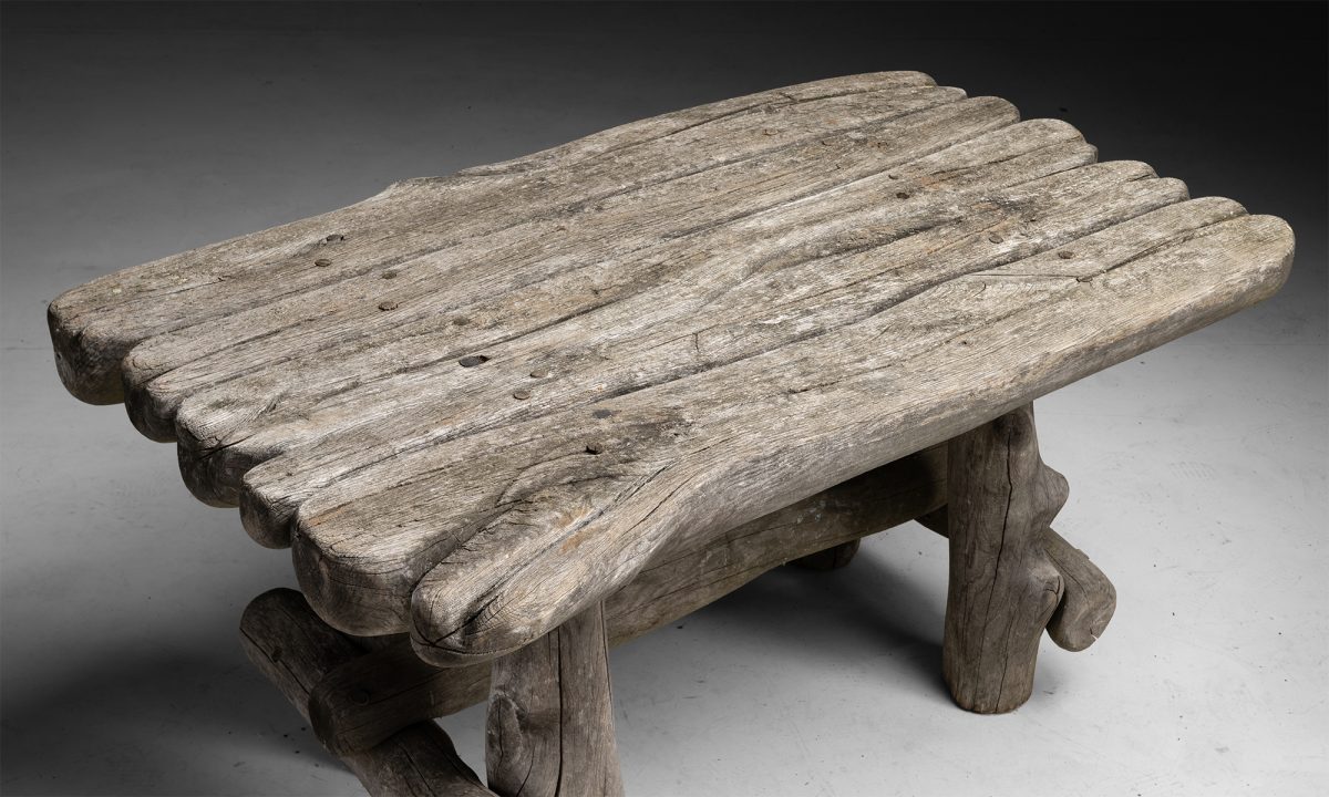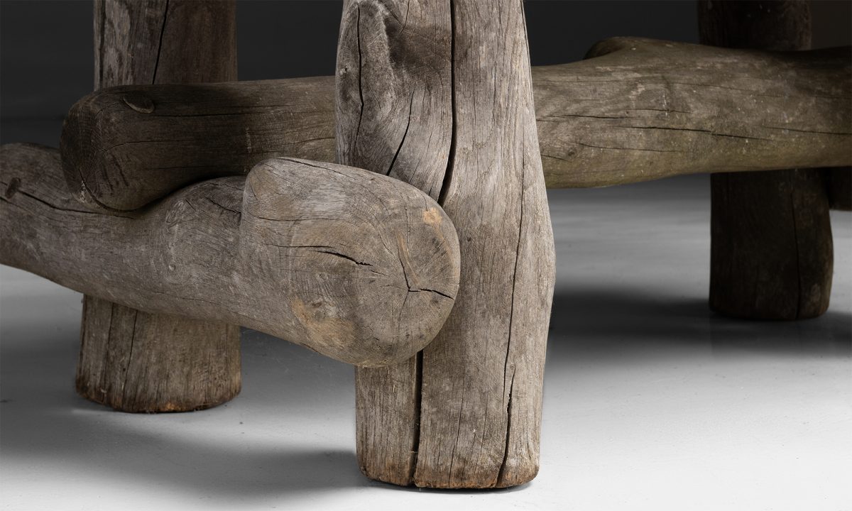 Constructed from a teak tree. Organic form.