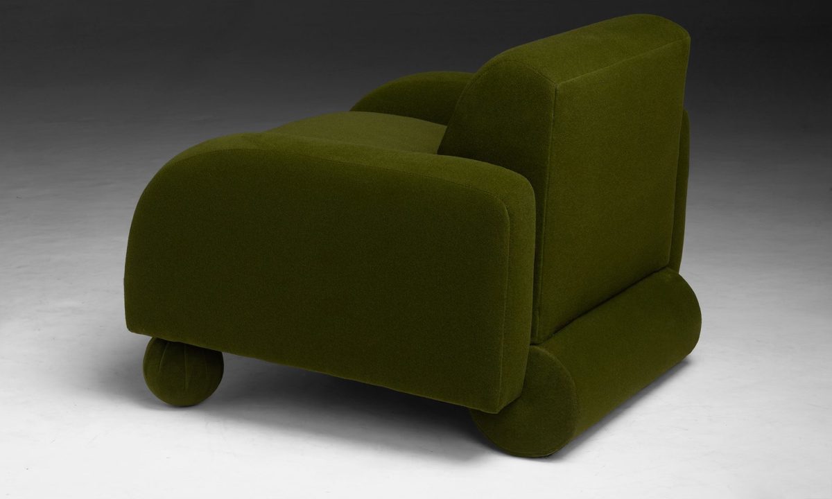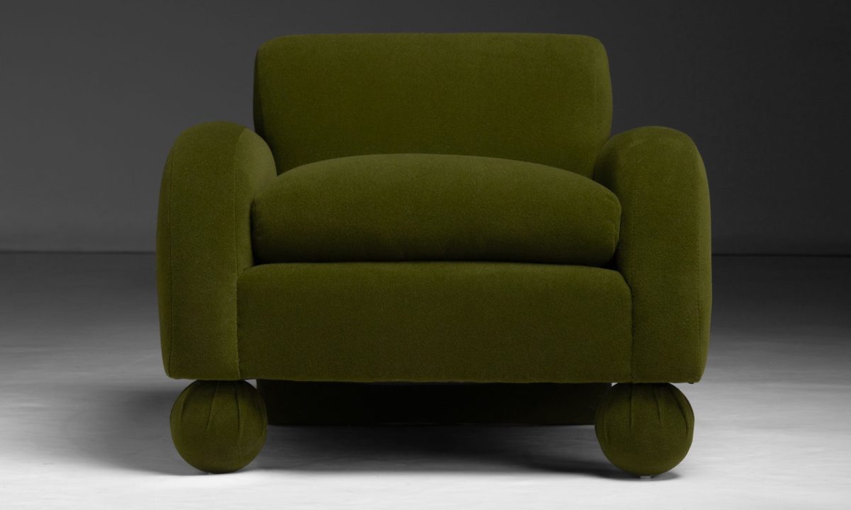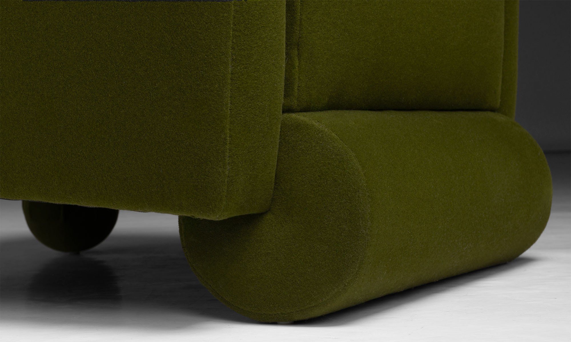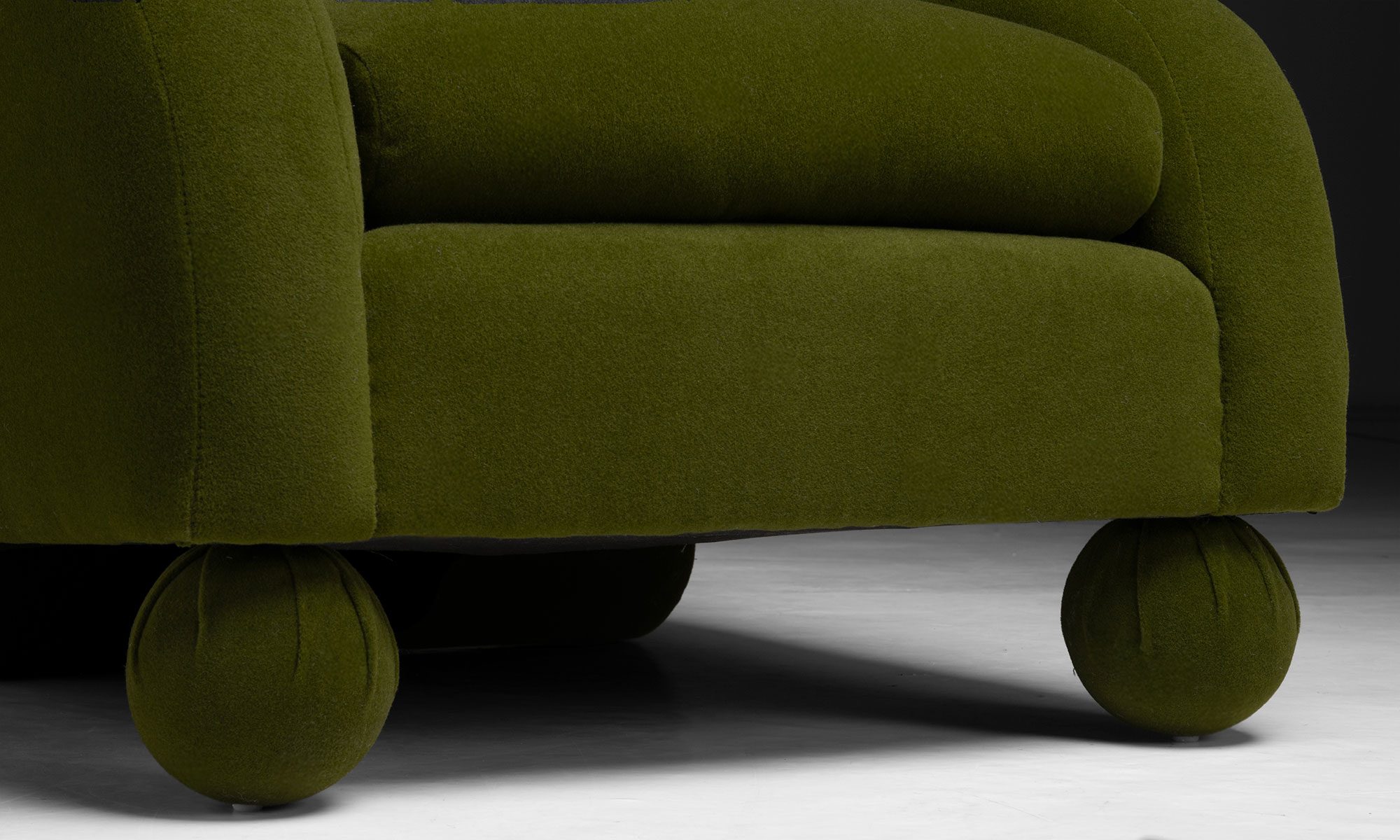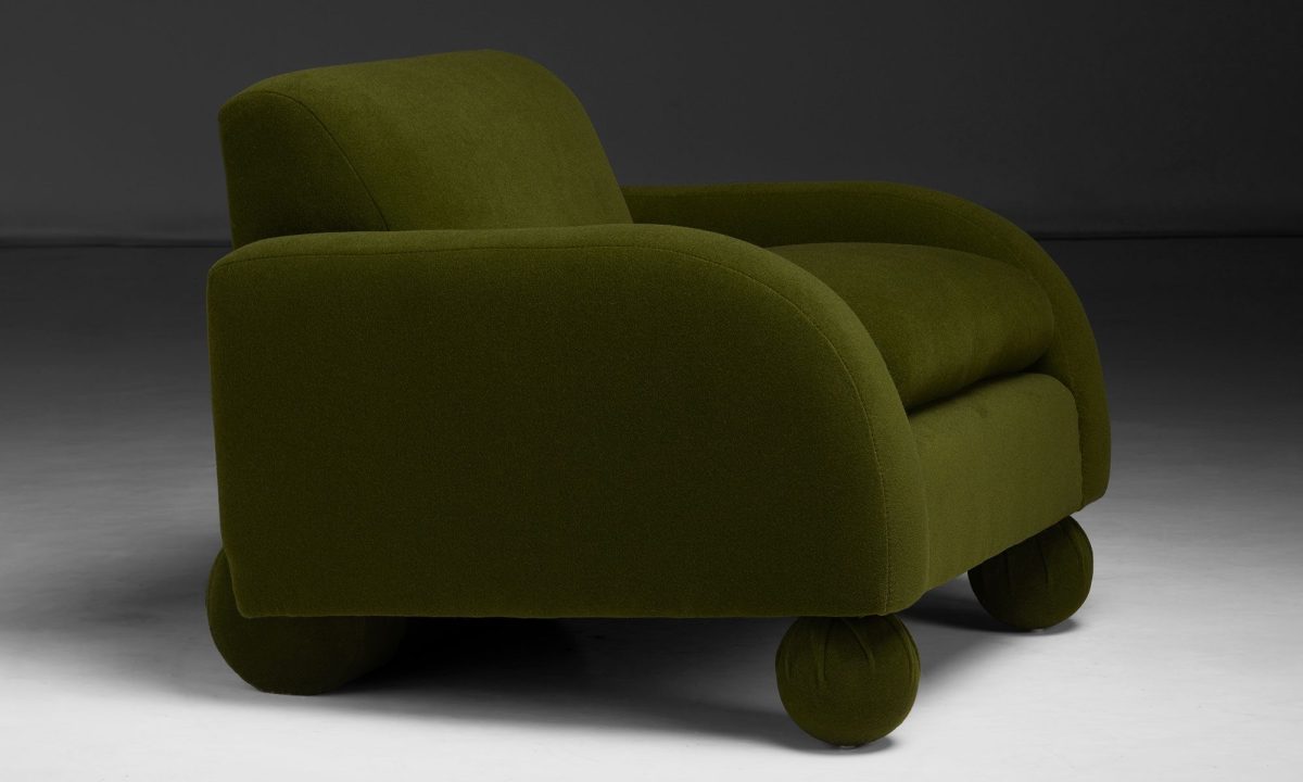 Hildegard club chair by Vladimir Kagan, newly upholstered in Holland & Sherry velvet.