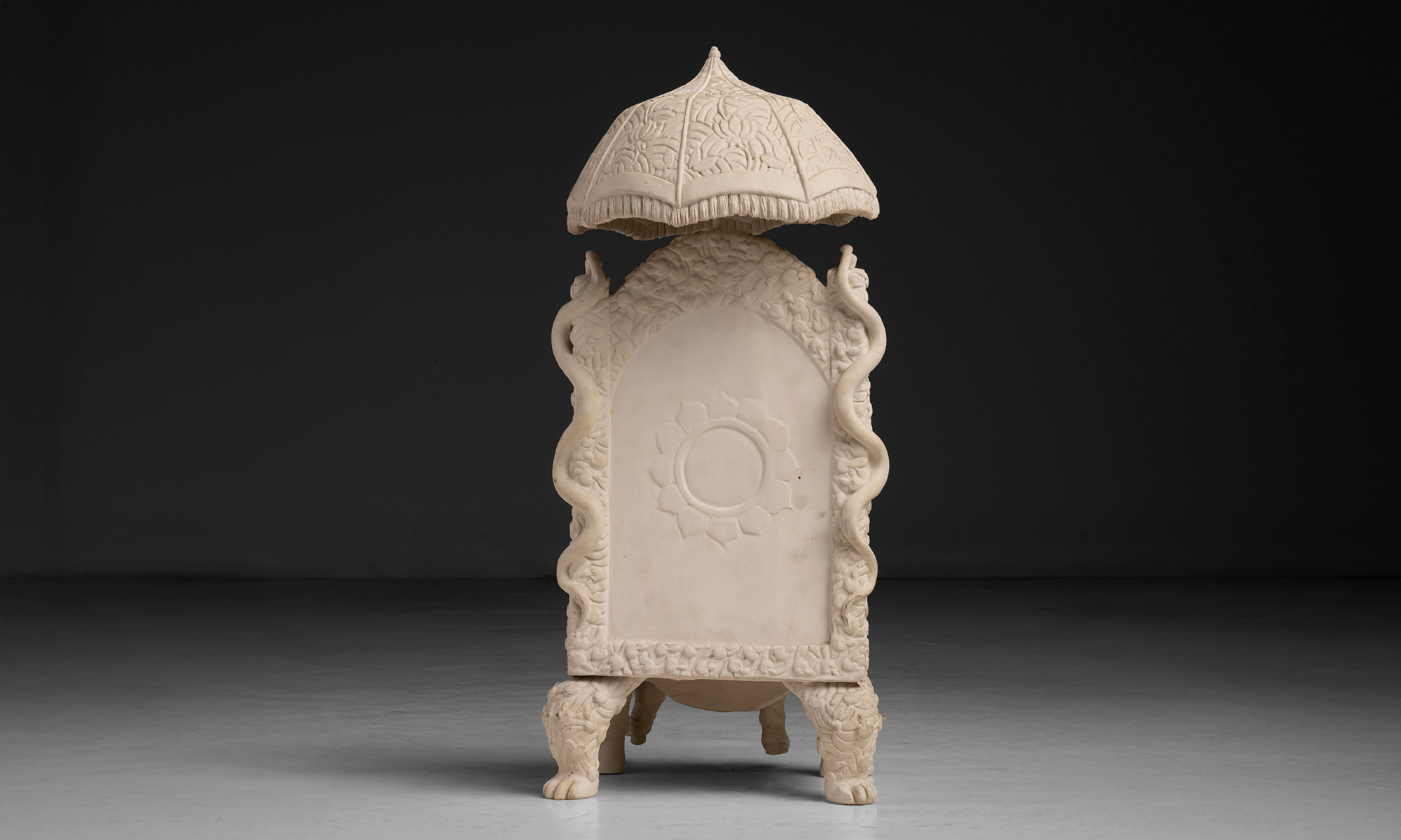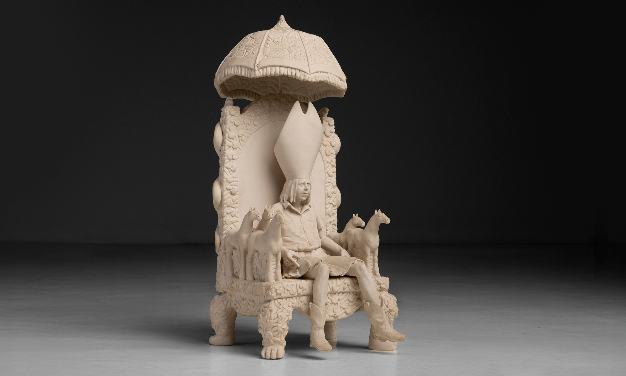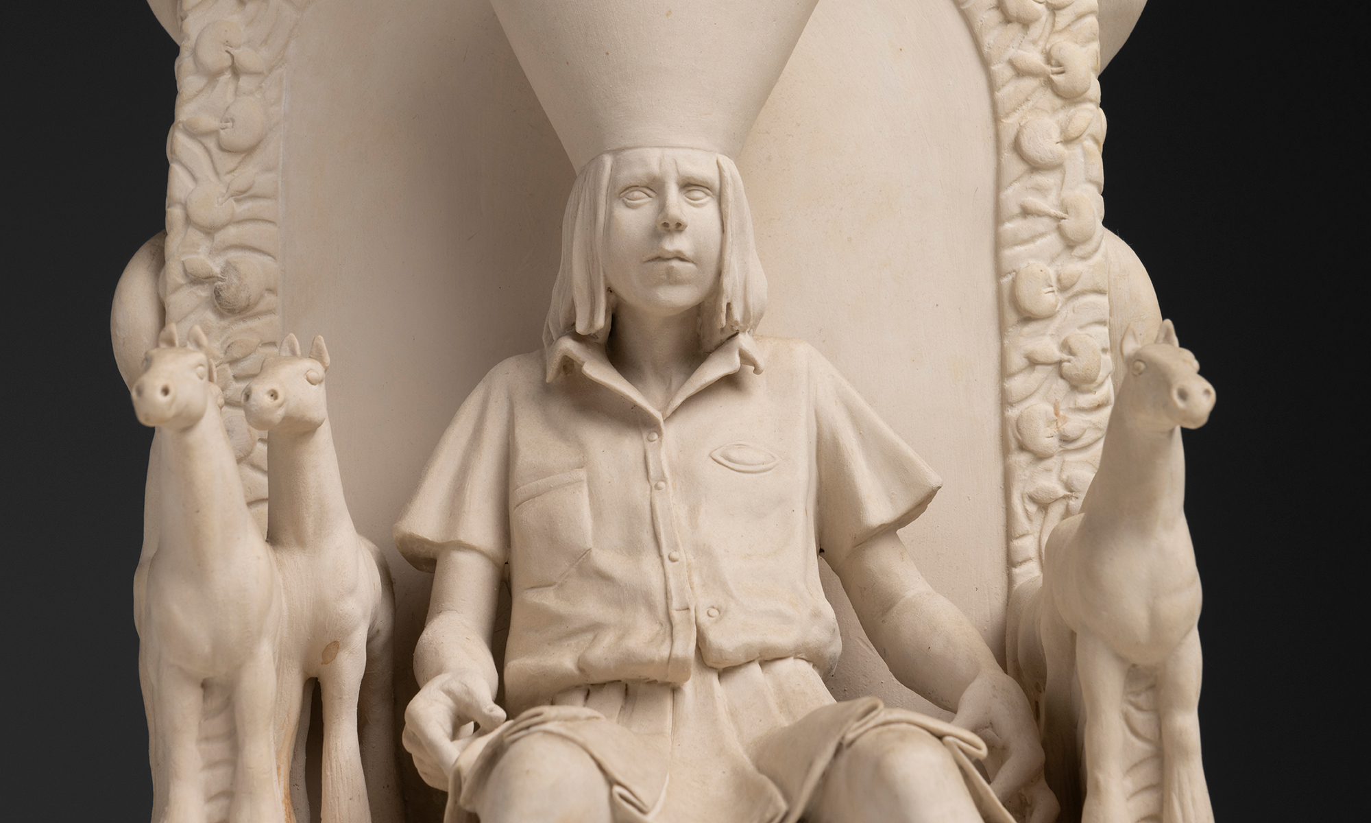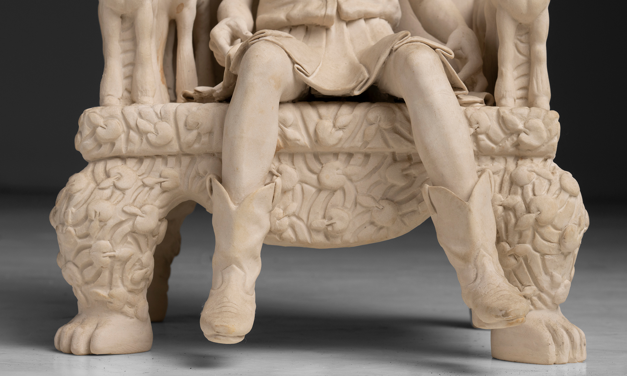 hand sculpted, bisque porcelain in three parts.