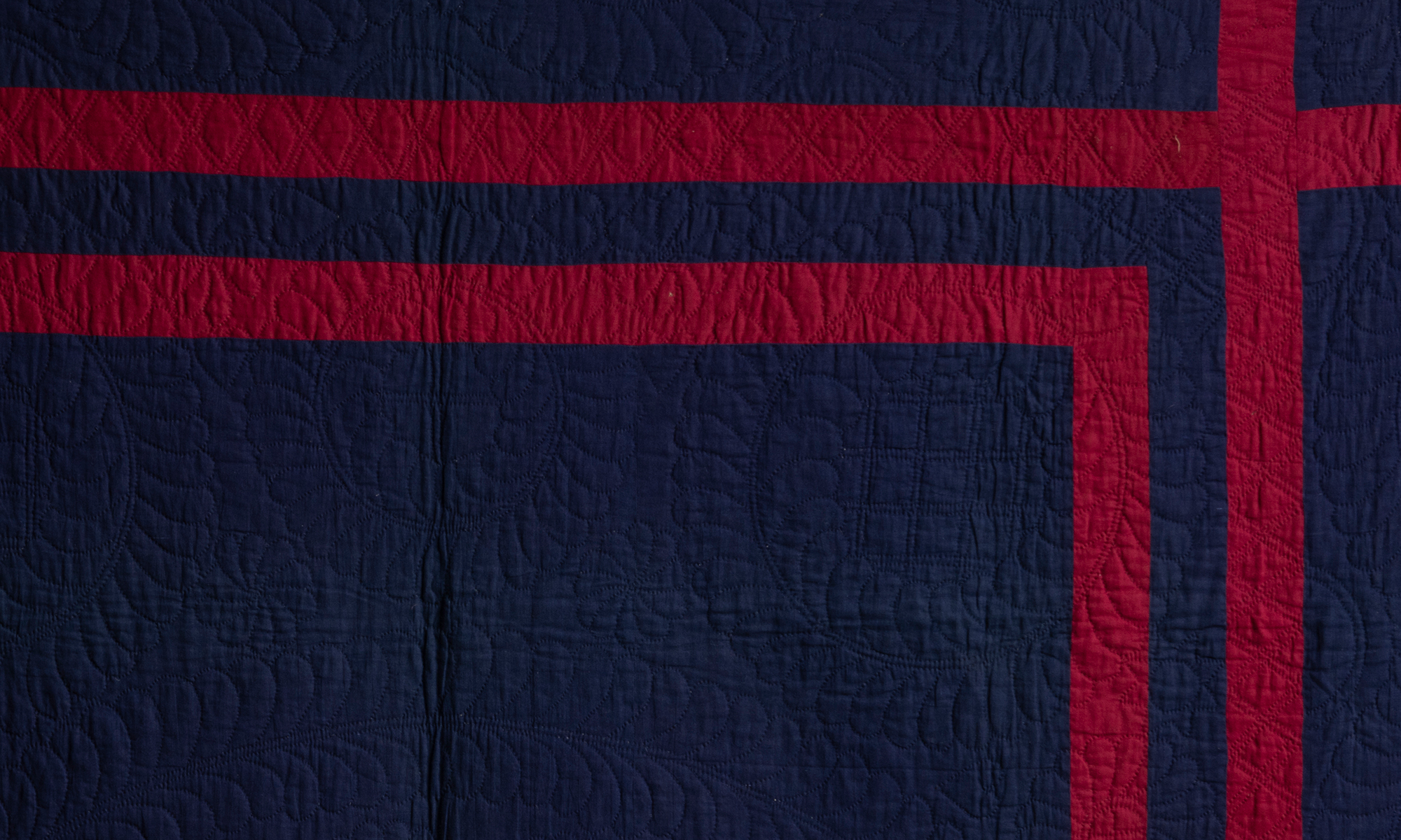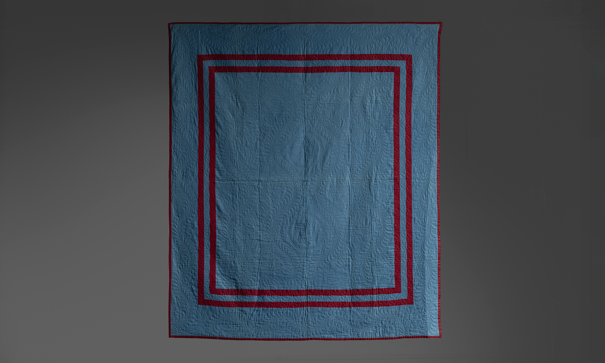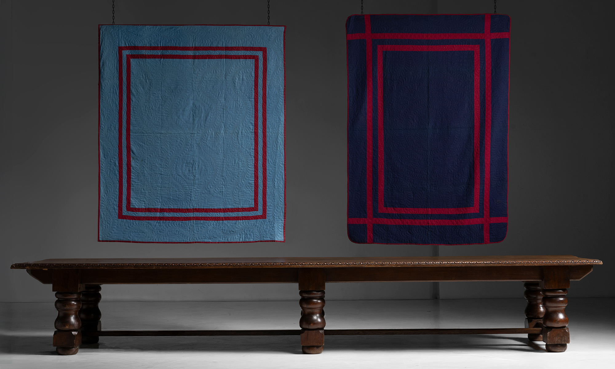 100% Cotton. Both feature a "plain" field with red double inner border. One light blue, One dark blue.