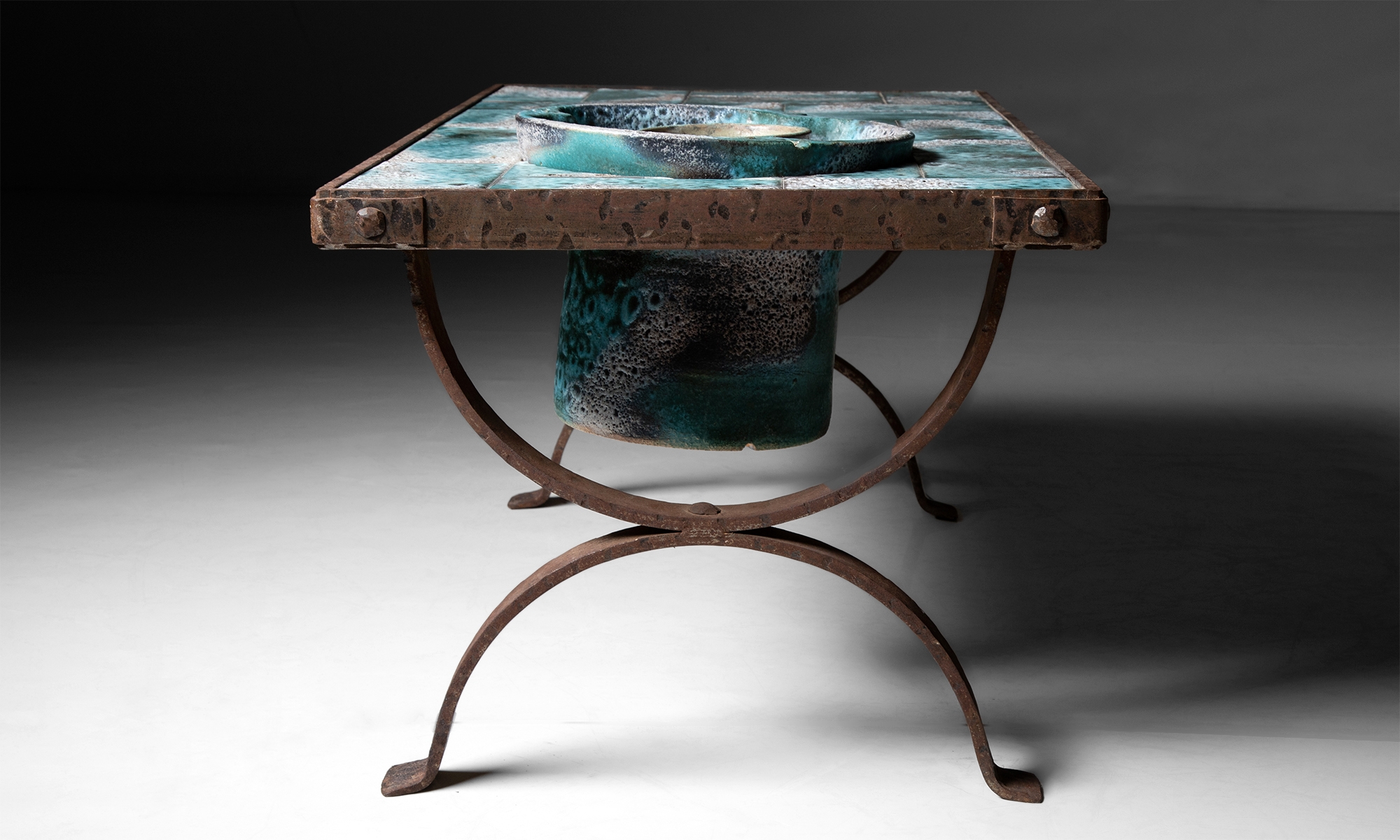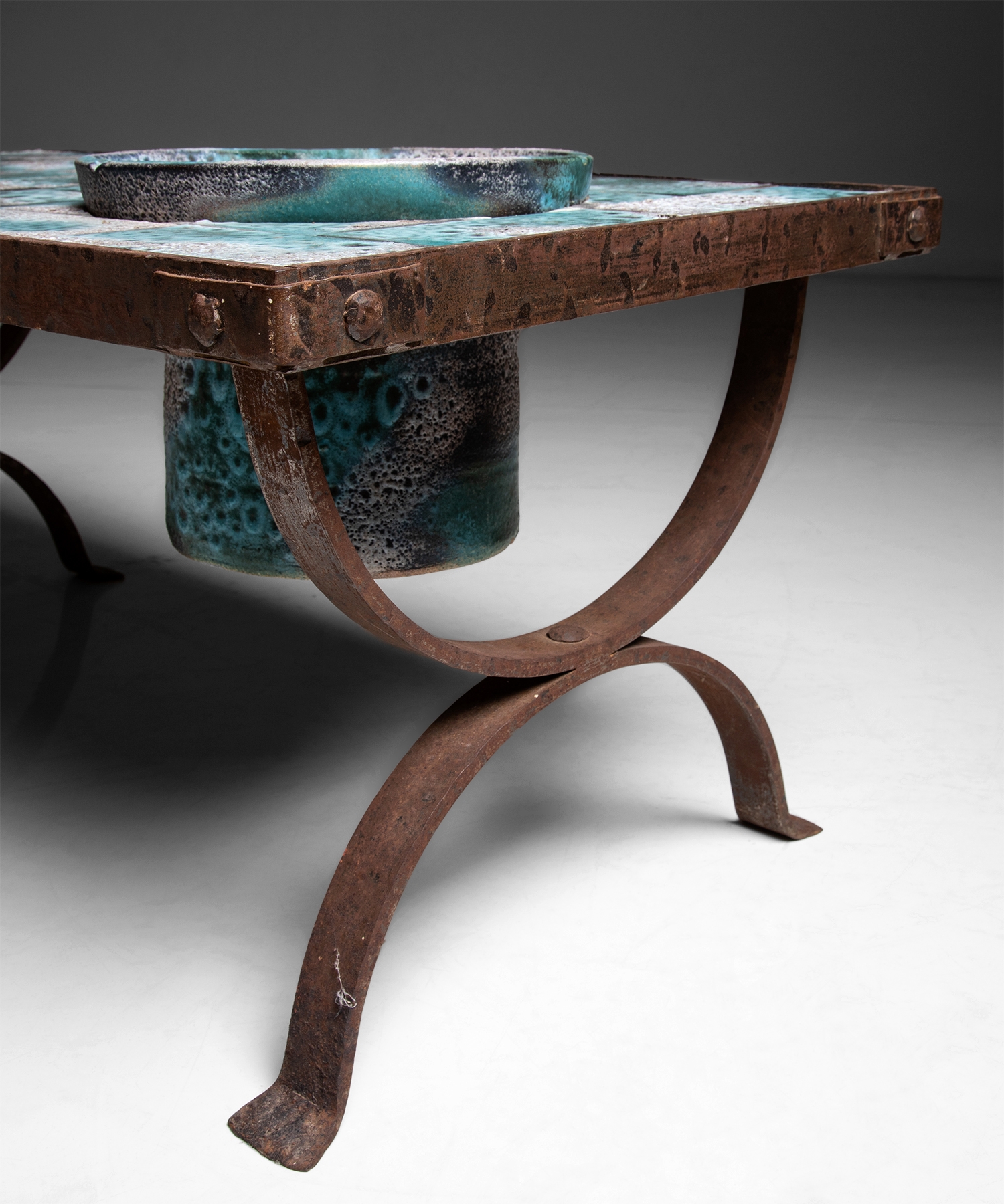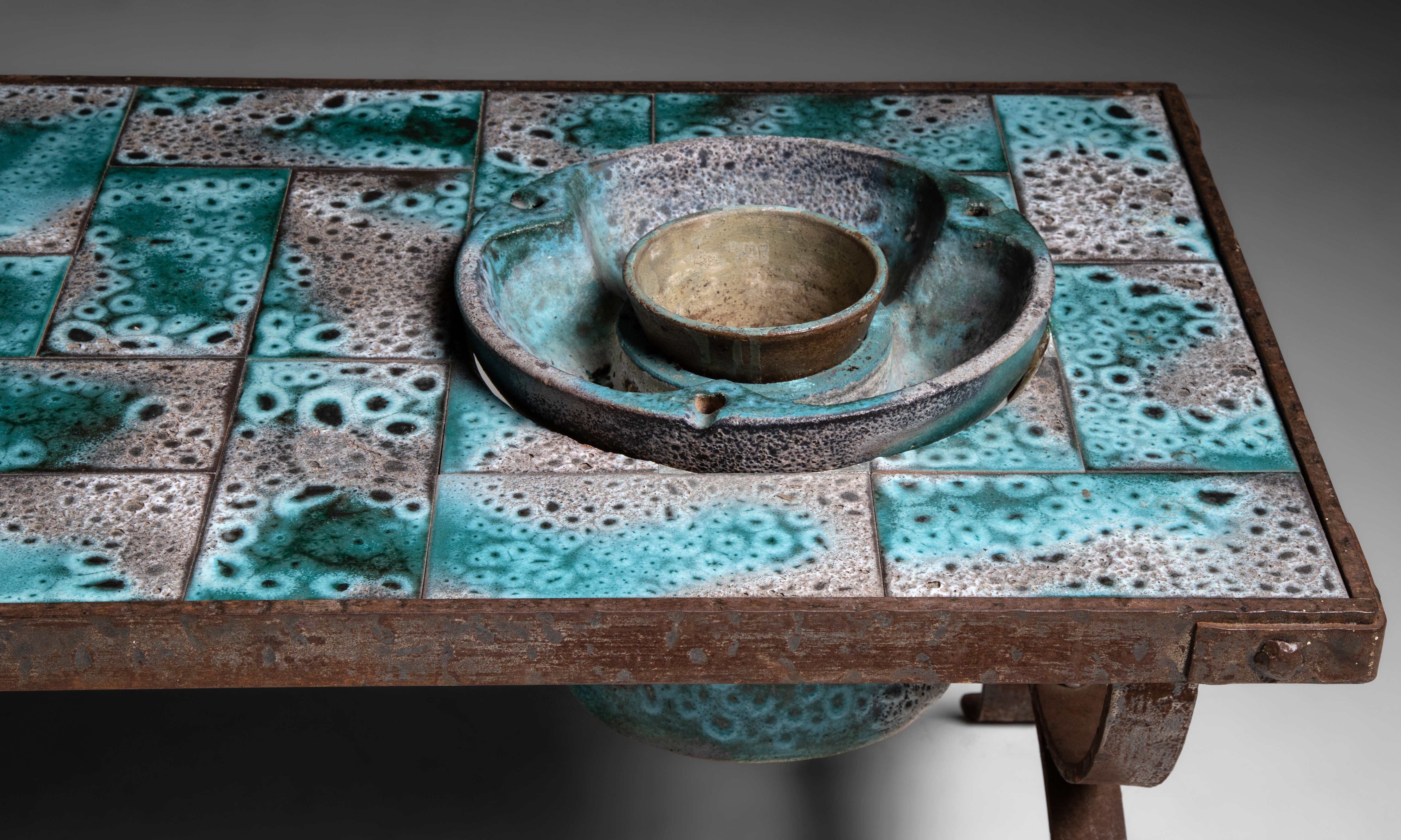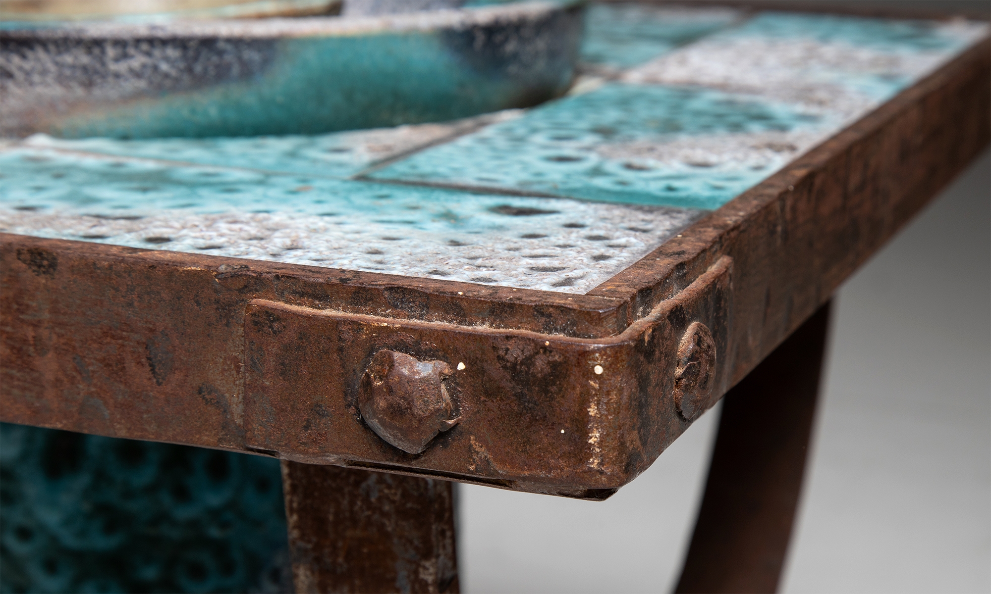 Oxidized iron frame with ceramic tiles from Vallauris.