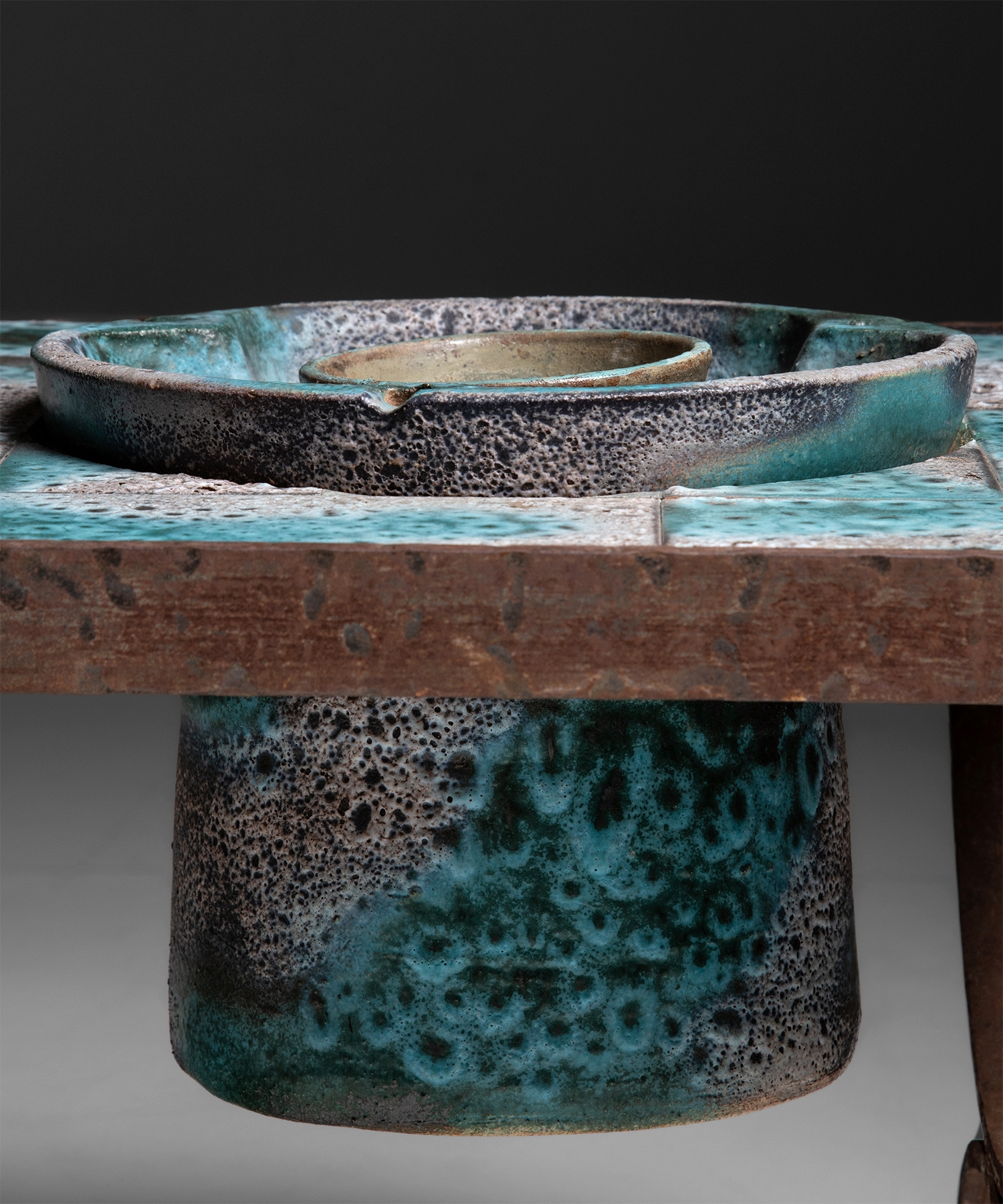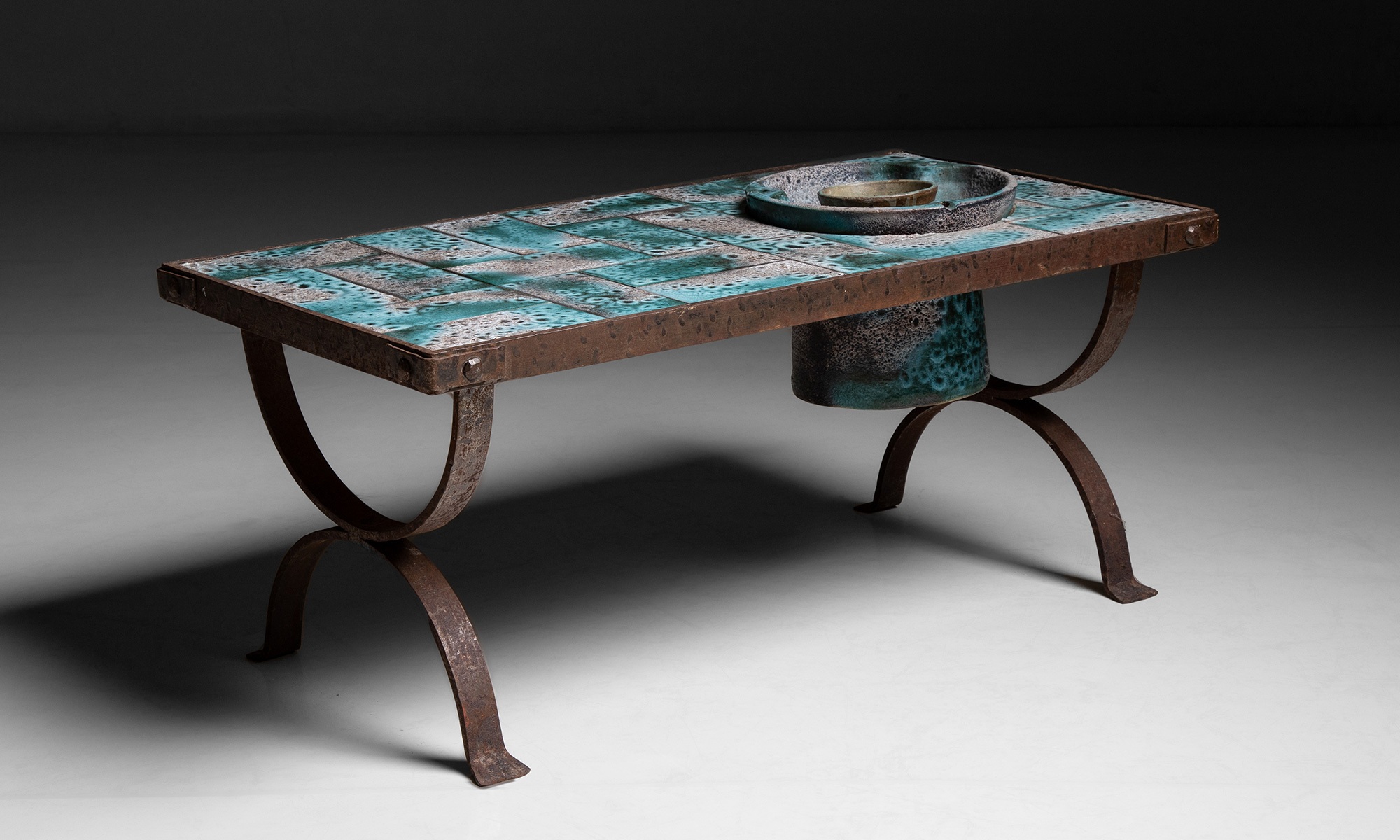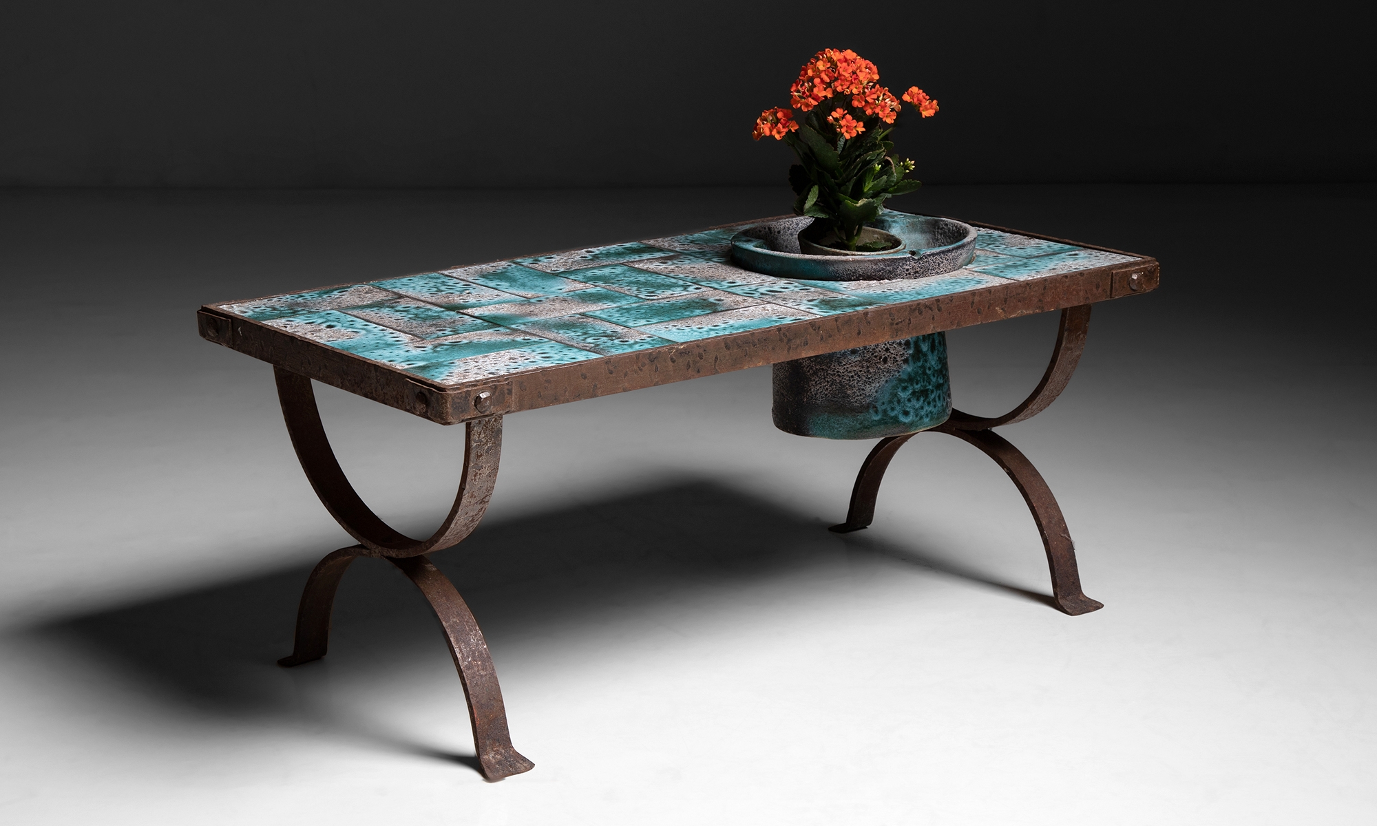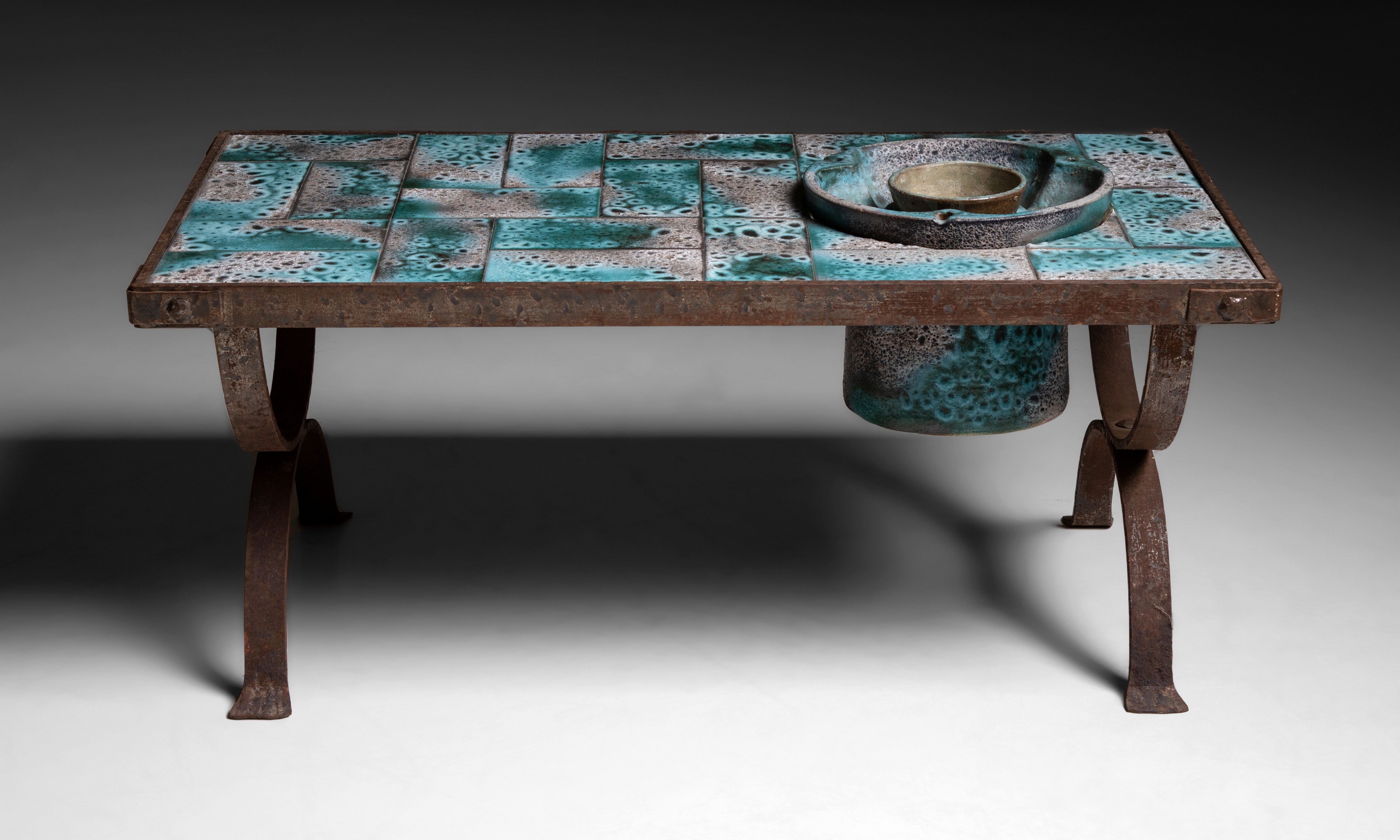 Oxidized iron frame with ceramic tiles from Vallauris.