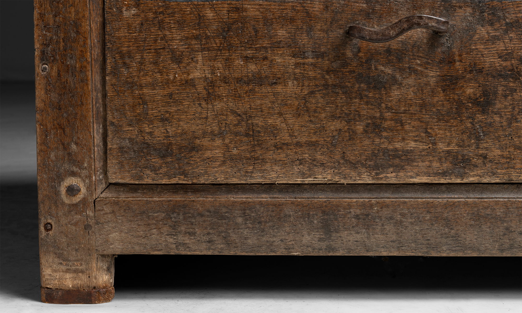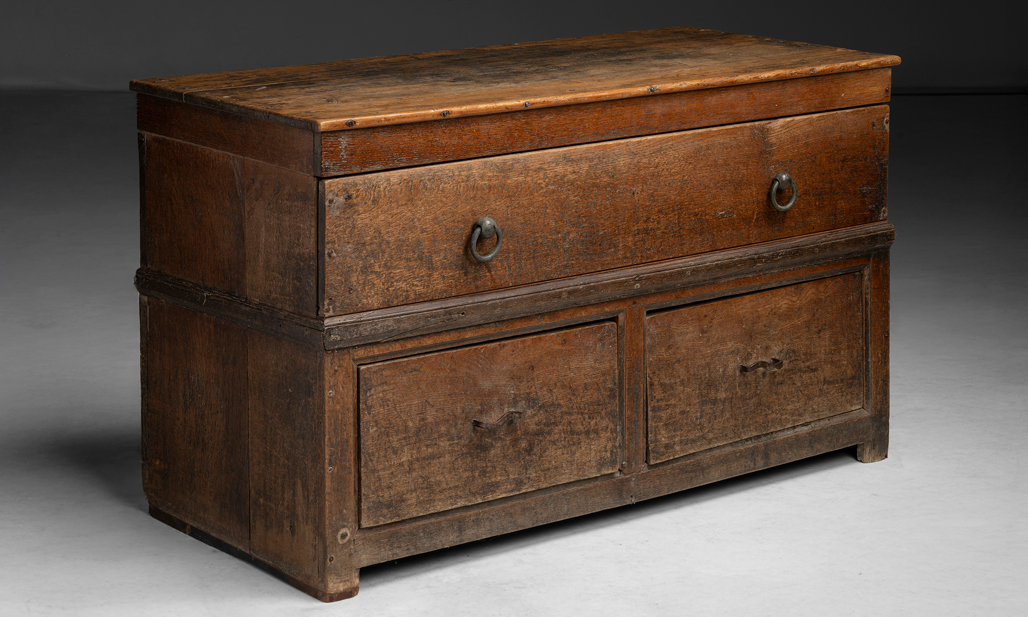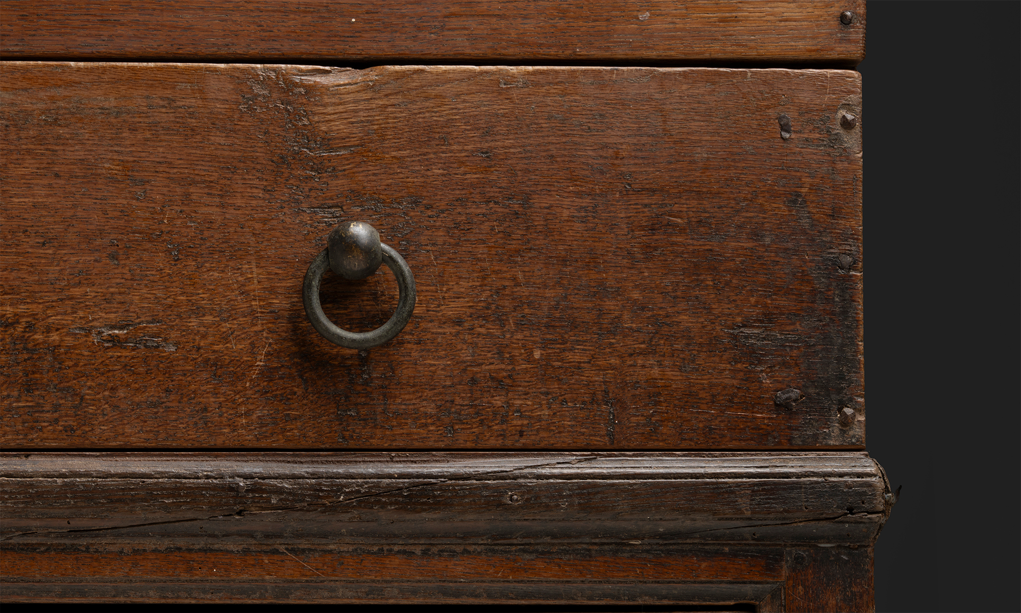 Large oak country dresser with 3 drawers, brass and iron pulls.