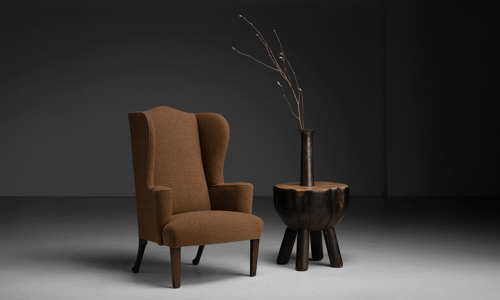 Cyprus wood four leg chopping block style table, cut and shaped from a mature fallen tree.