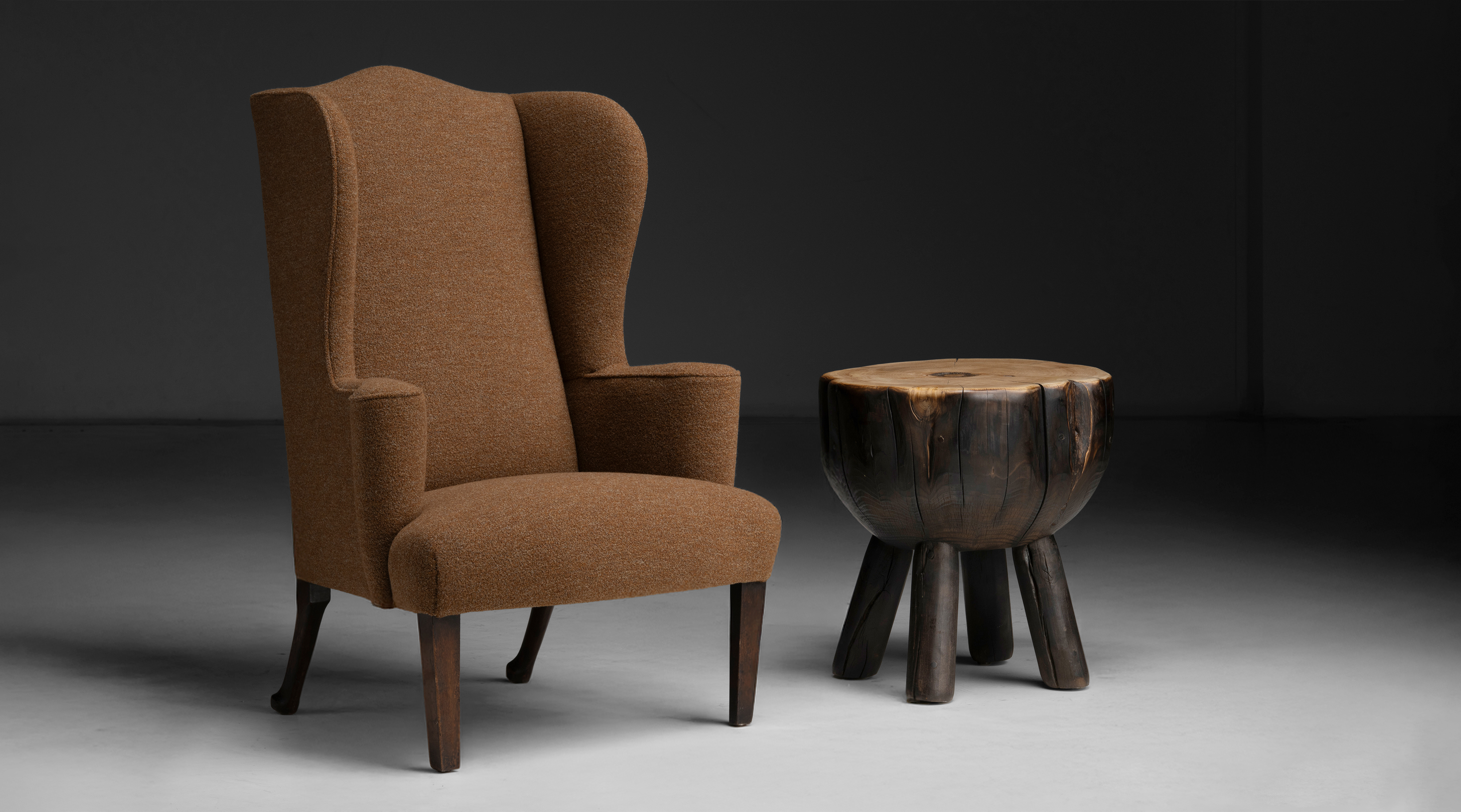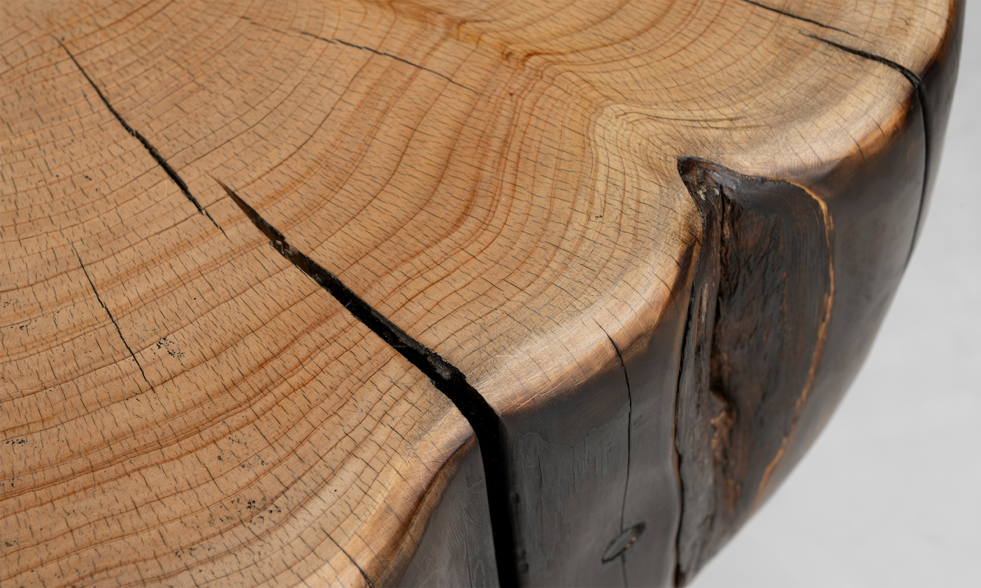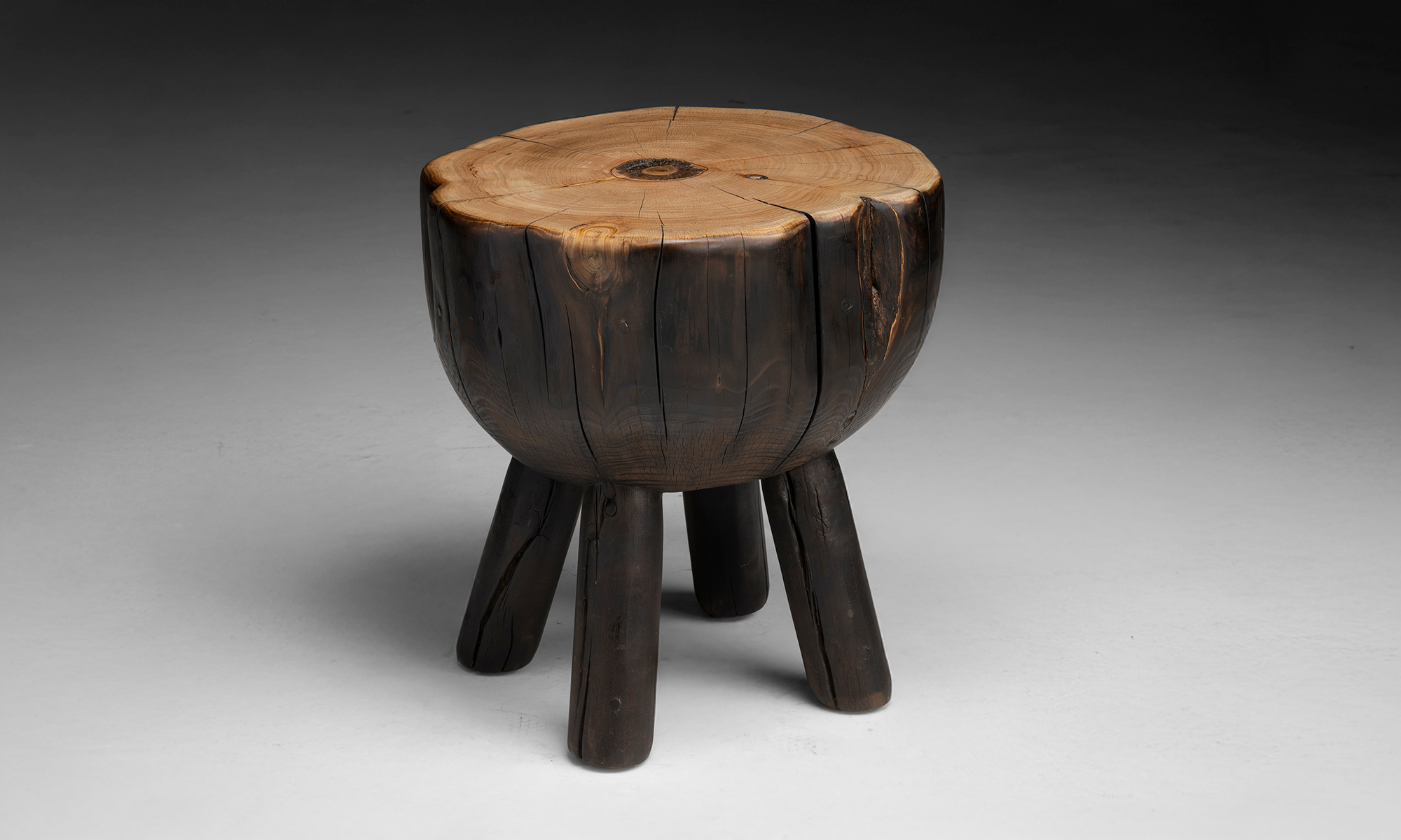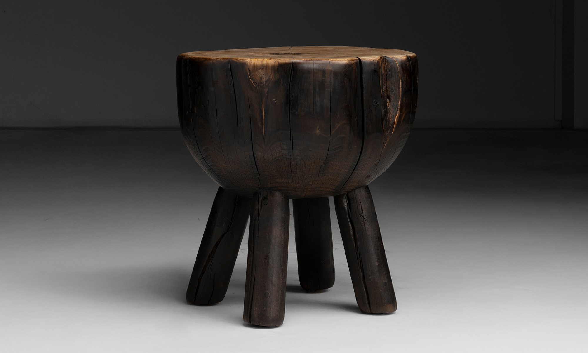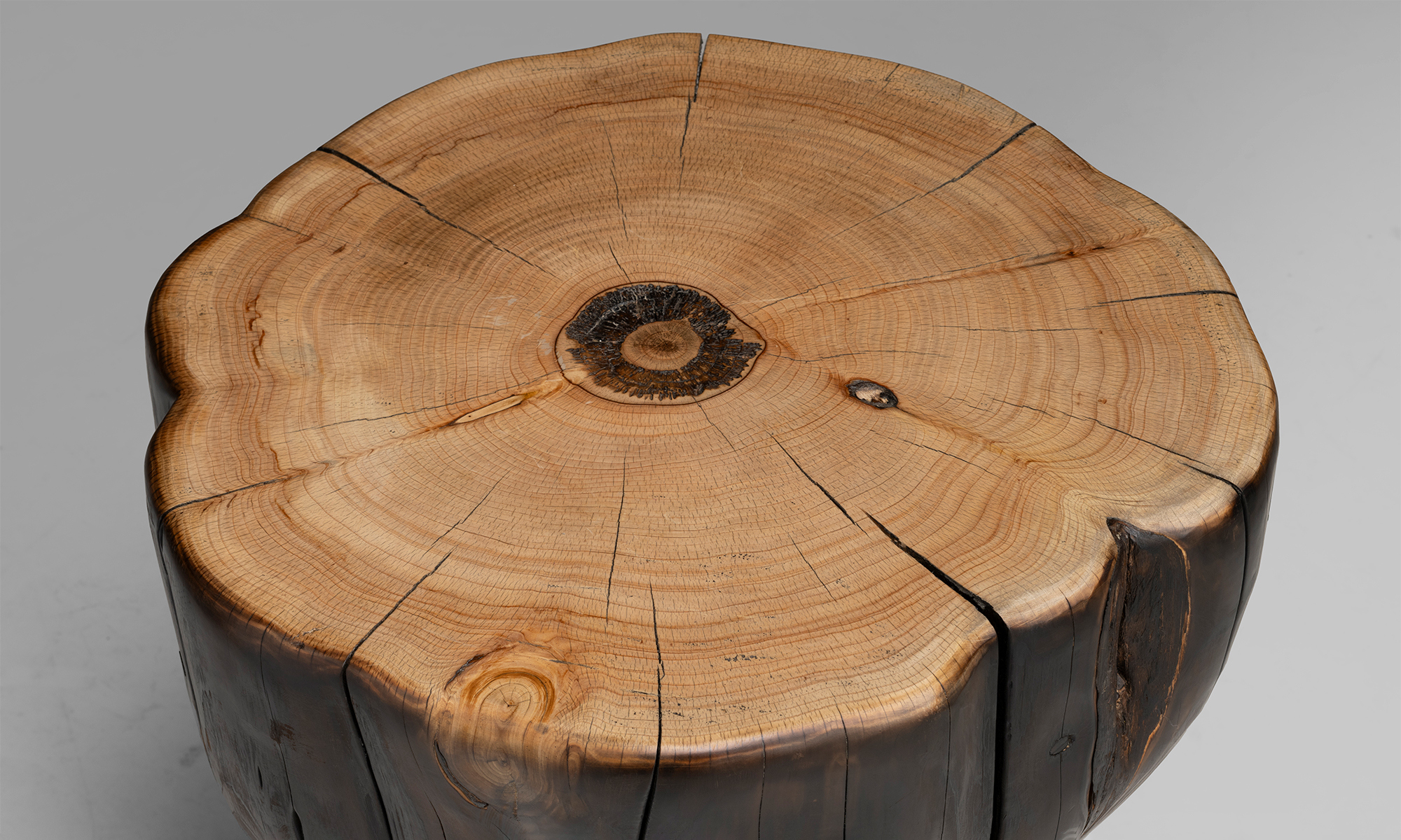 Cyprus wood four leg chopping block style table, cut and shaped from a mature fallen tree.