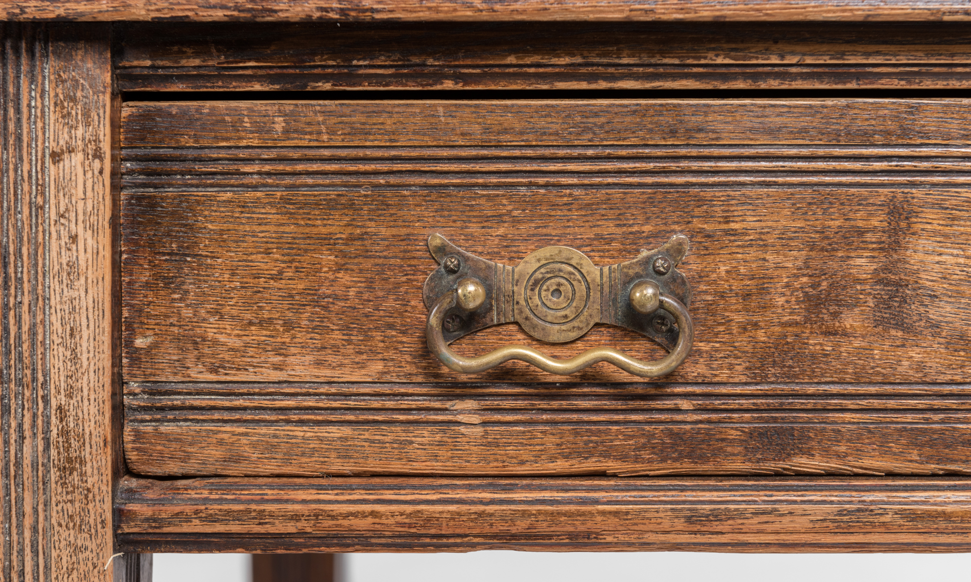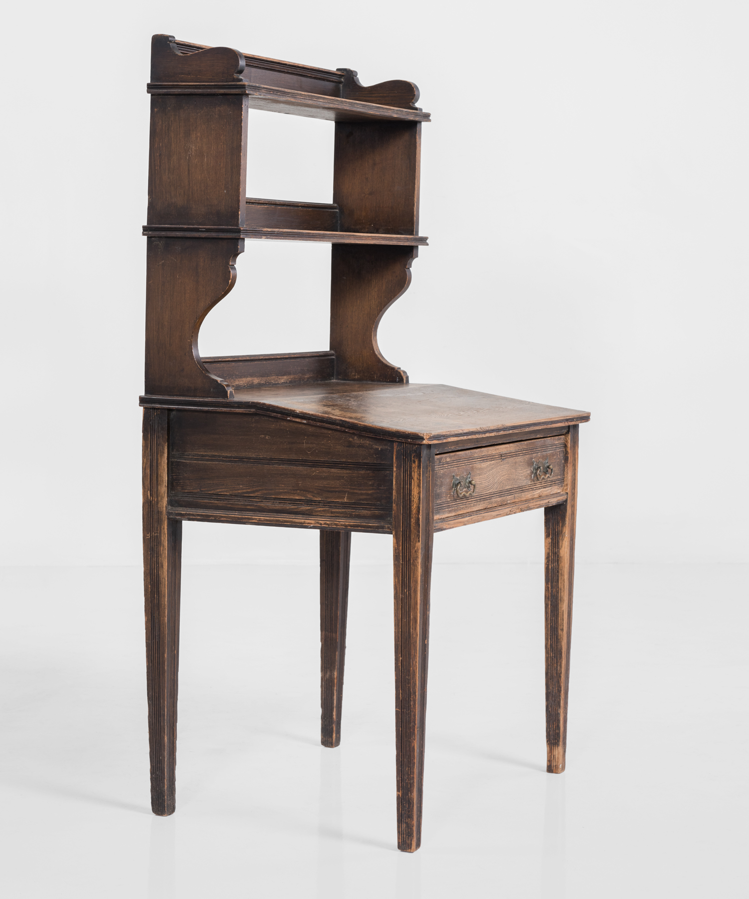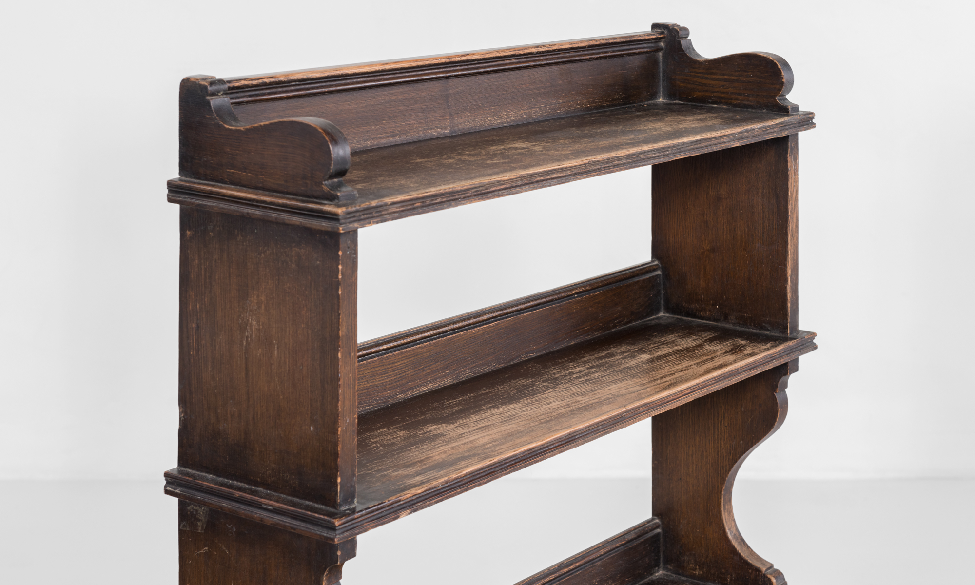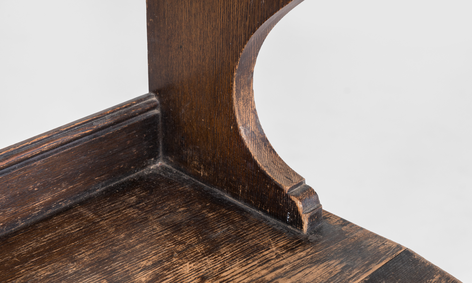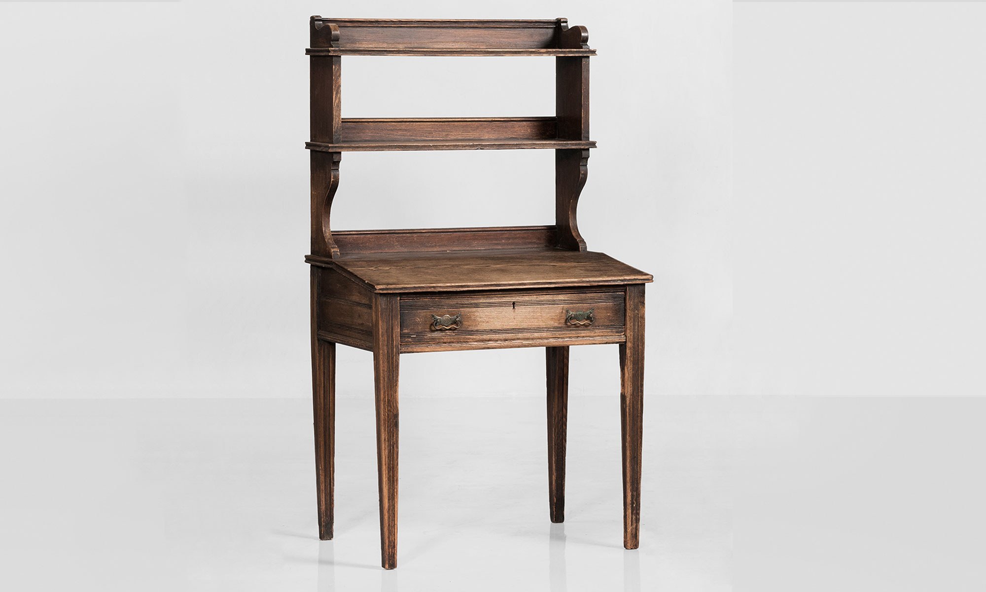 Oak construction with a bookcase back and wonderful patina.