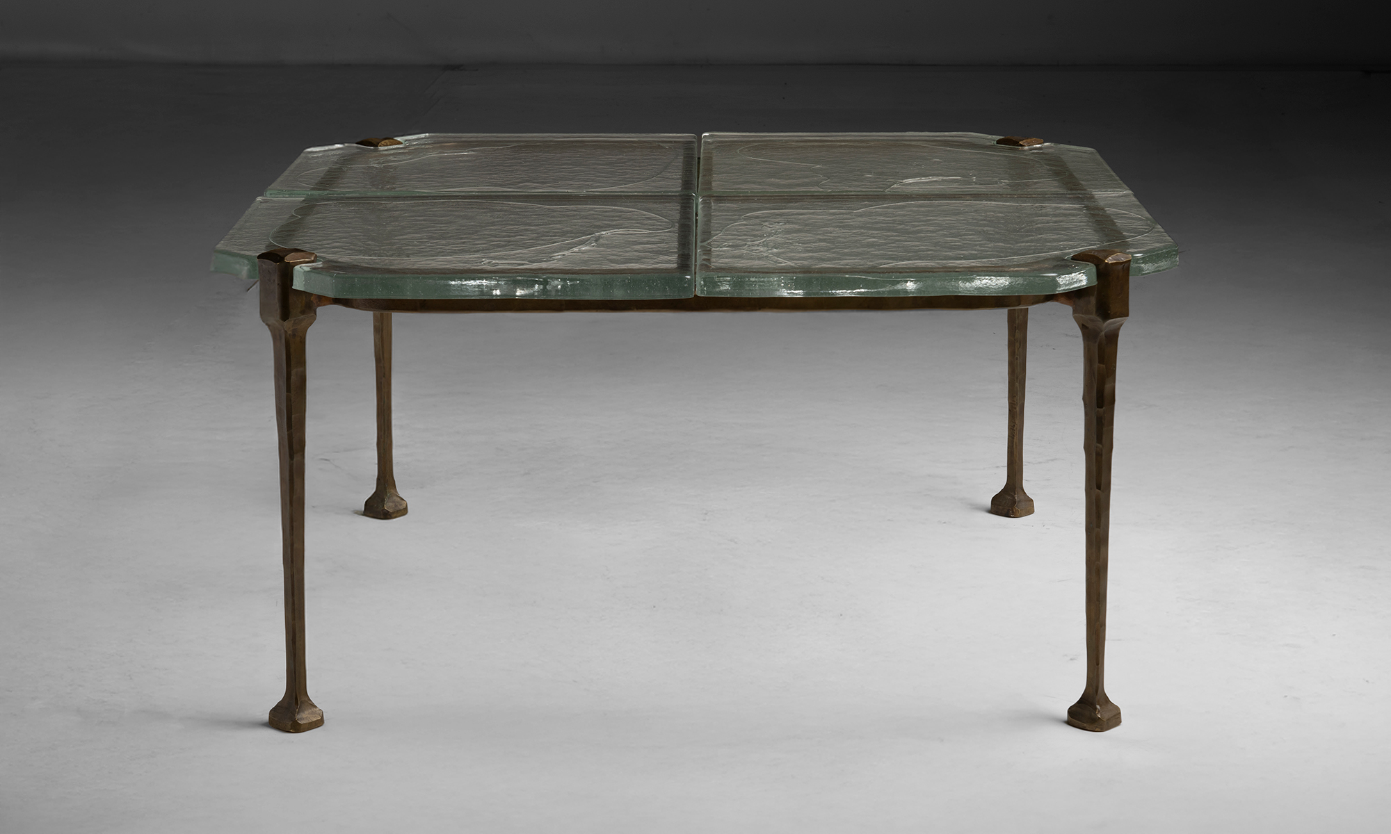 Cast bronze and glass coffee table, made by Lothar Klute.