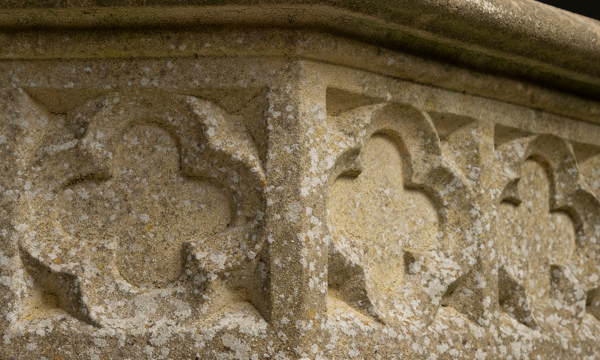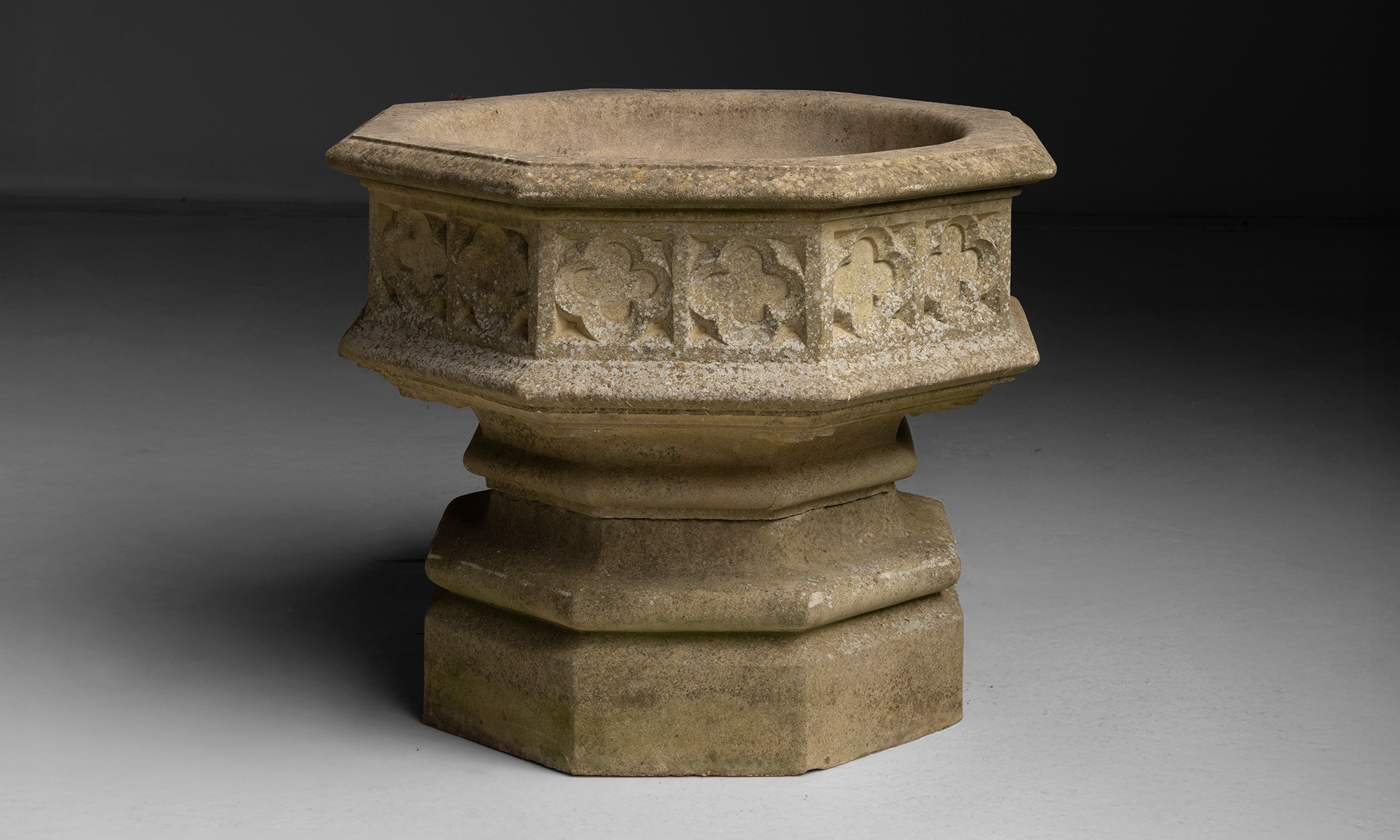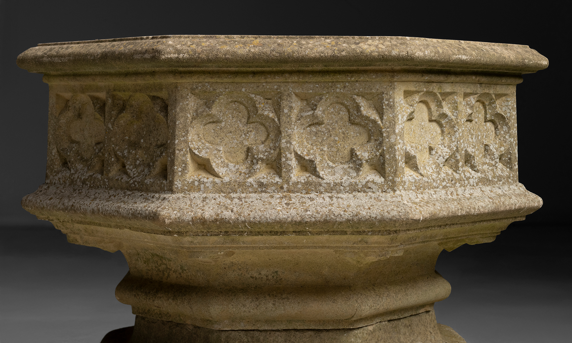 Octagonal form with gothic quatrefoil emblems to the frieze
