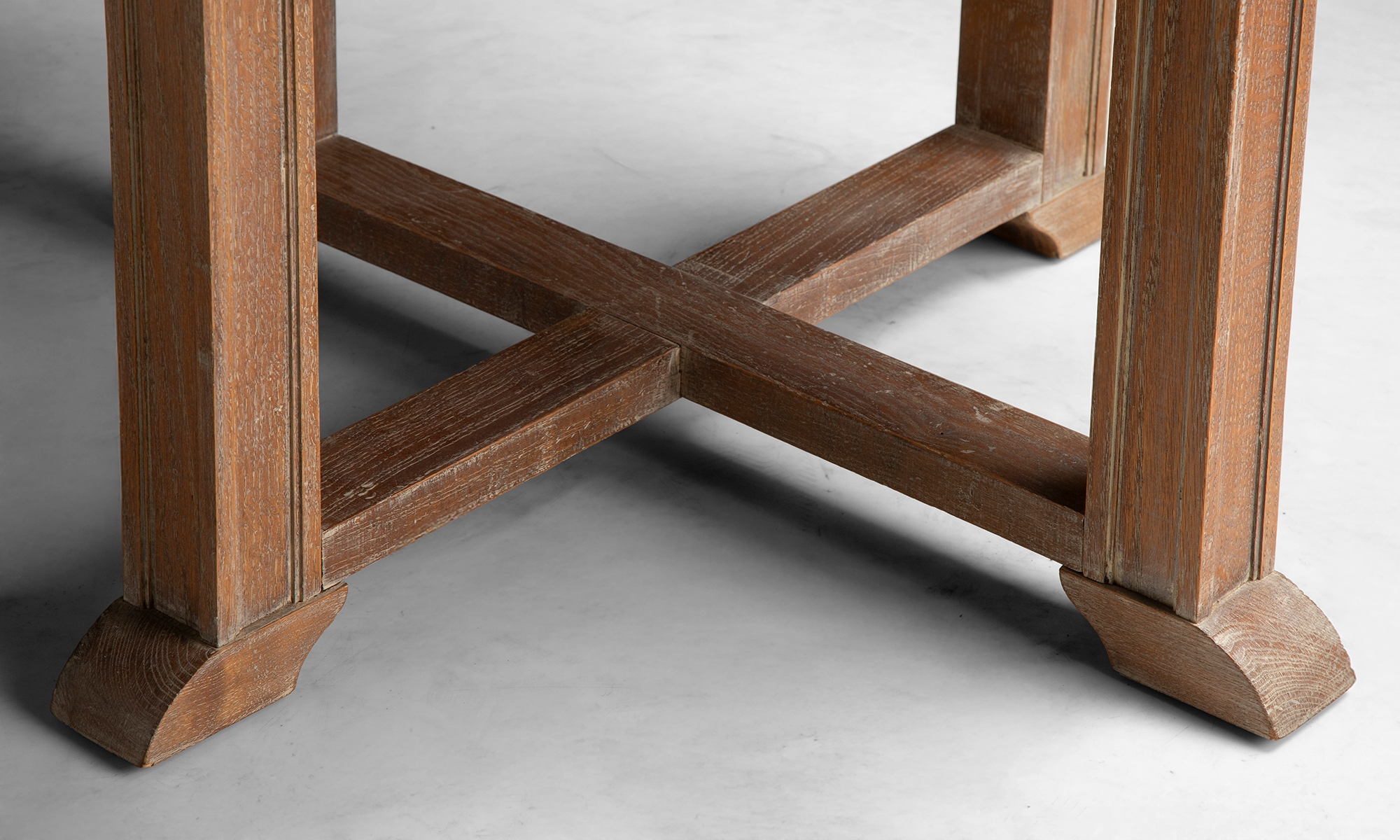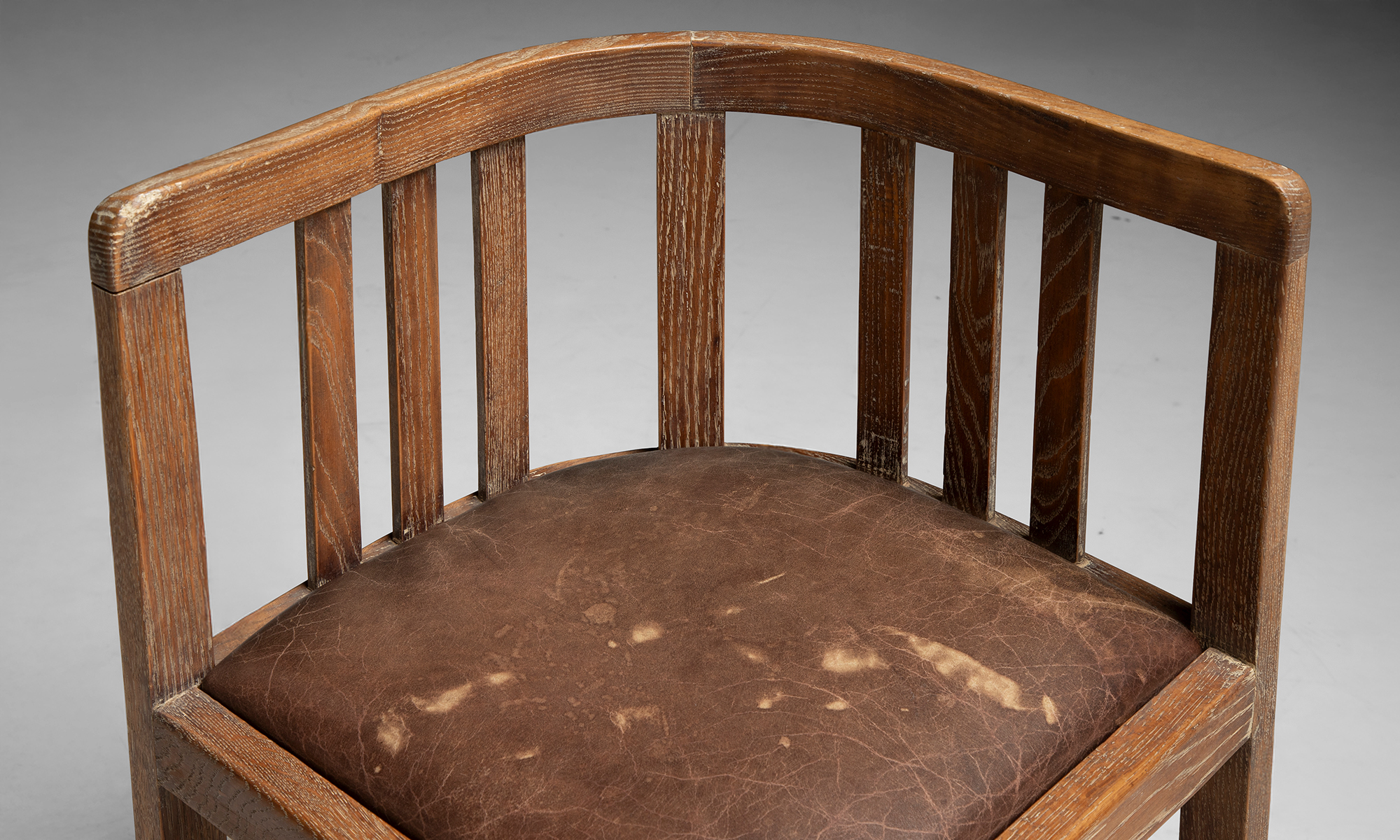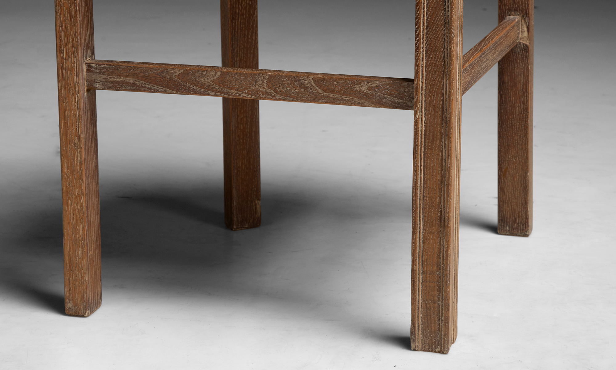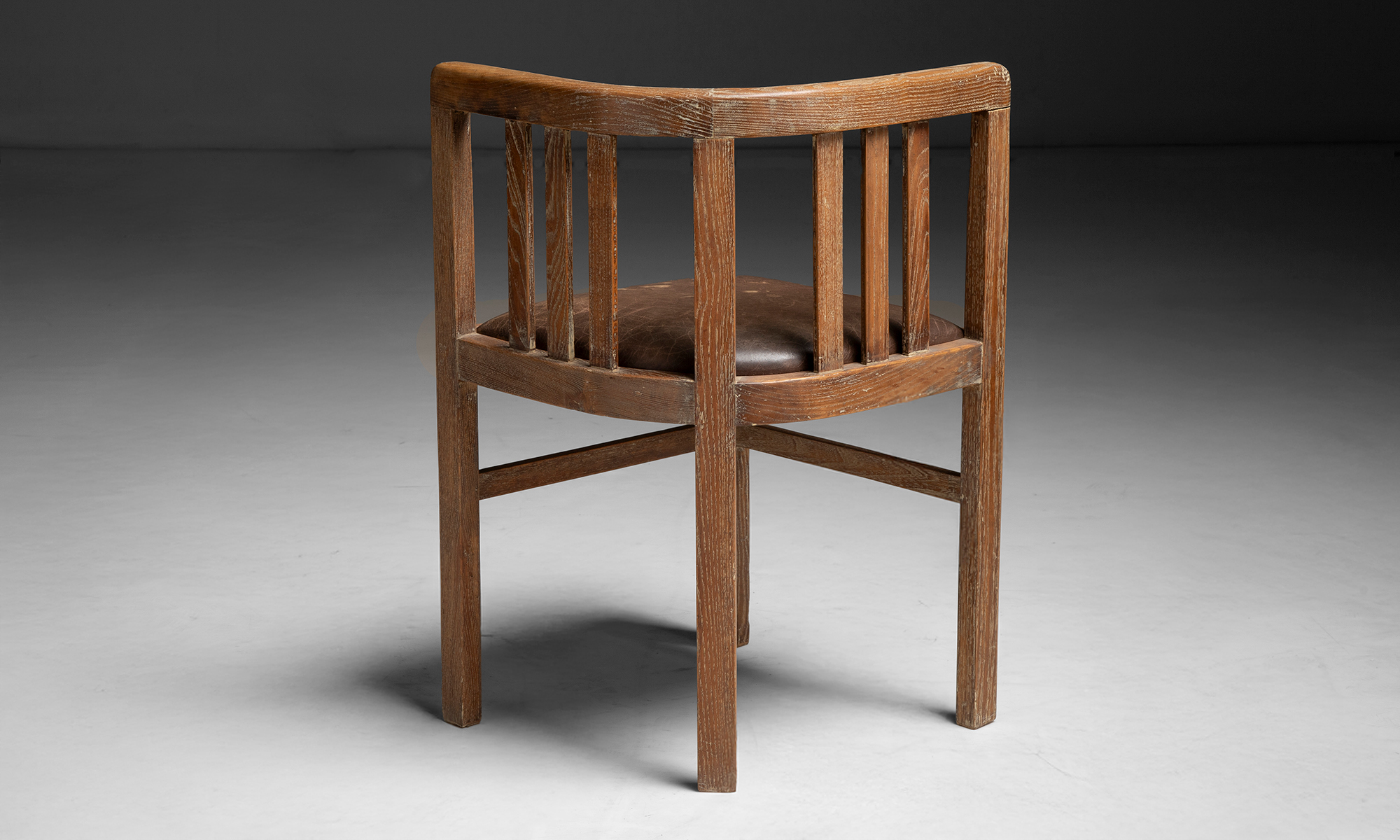 Slatted oak garden table and dining chairs with leather seats by Heal's of London.