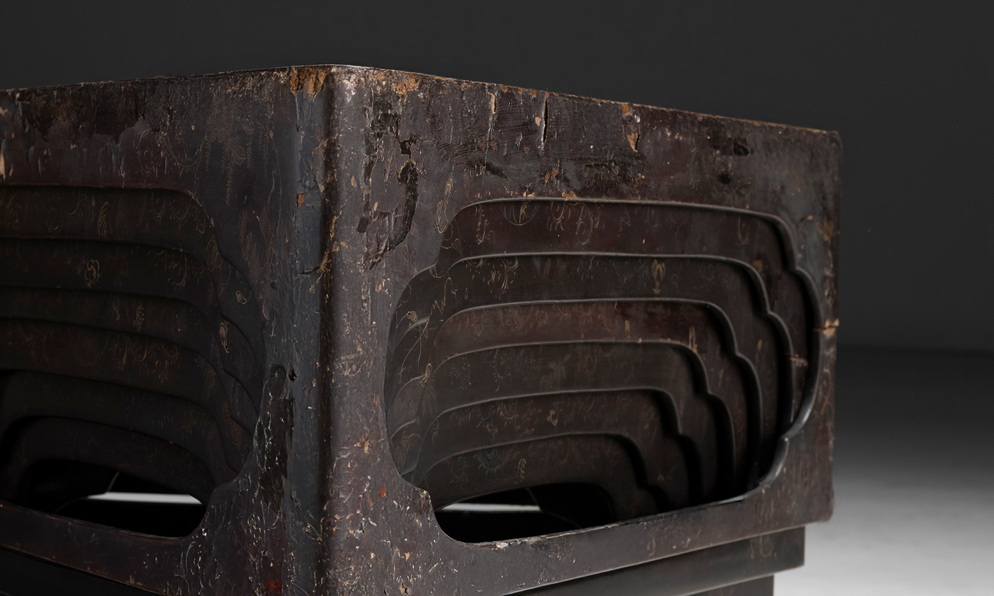 Set of 7 nesting tables in various sizes, can be stacked or used as a full coffee table or side table.