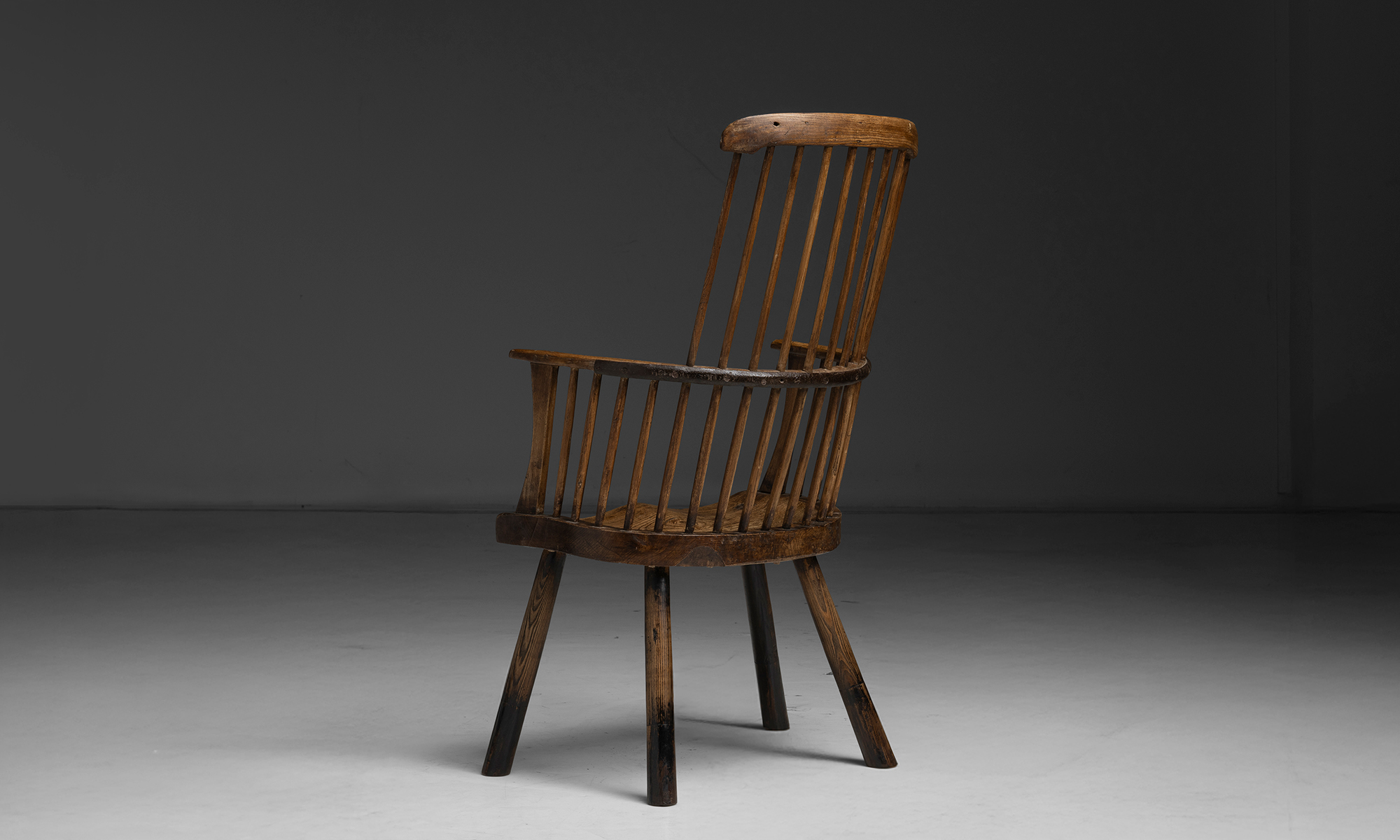 Primitive chest of drawers with iron pulls. Constructed in ash and elm.