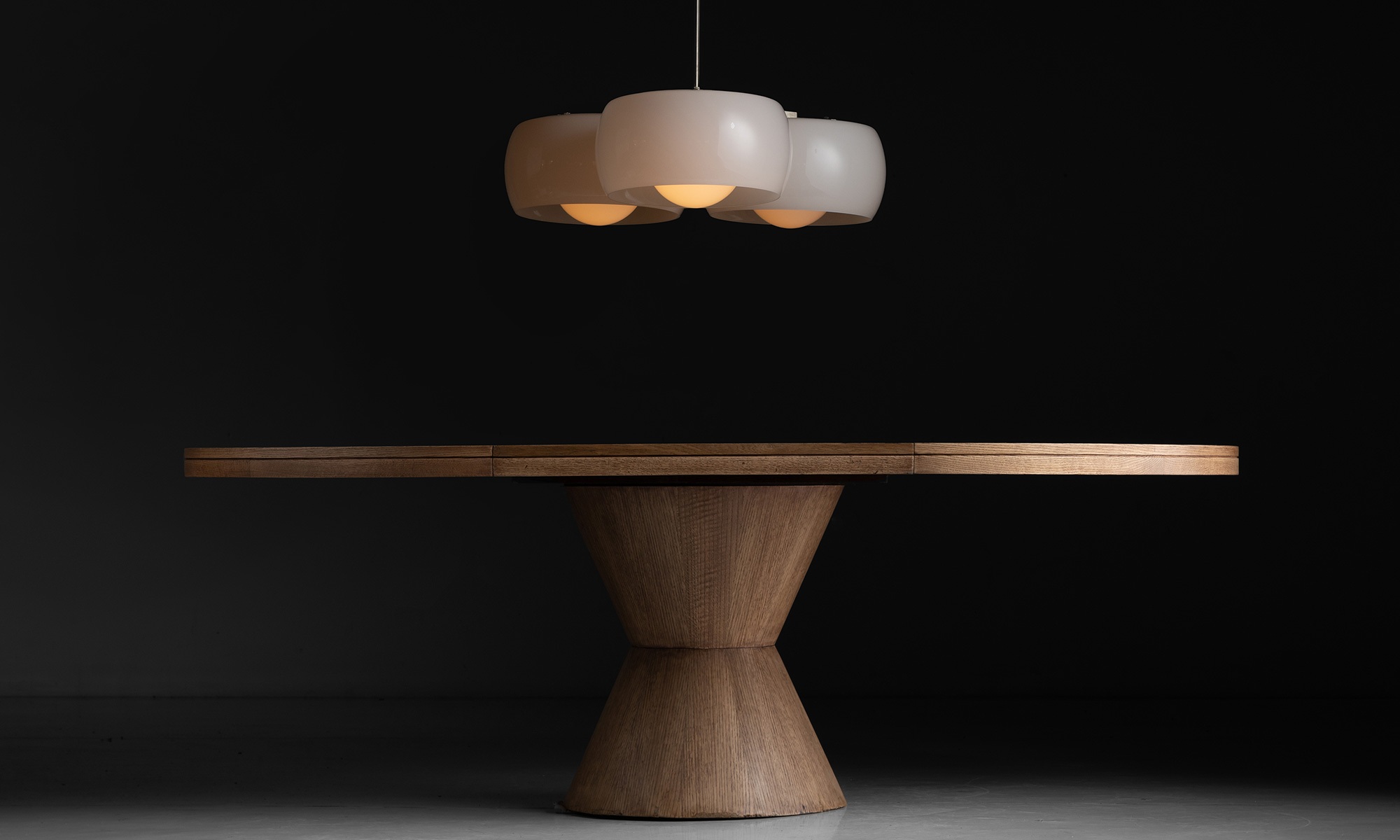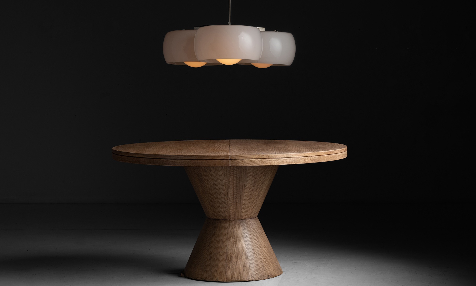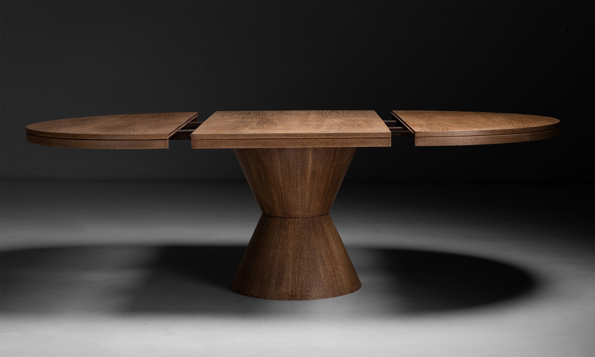 Beautiful form, constructed in solid ash wood. Converts from round to Oval.
