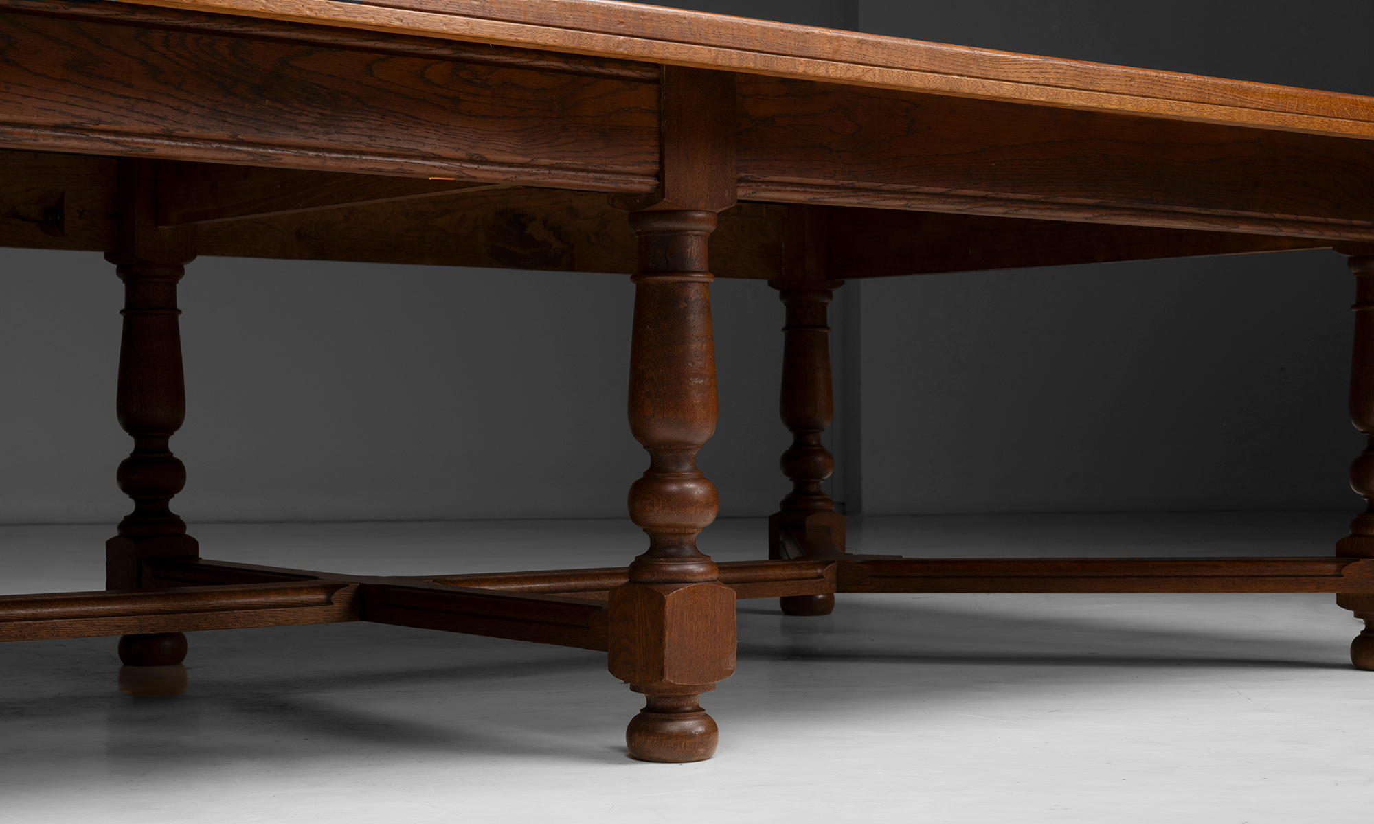 Rectangular parquet top on eight leg base.