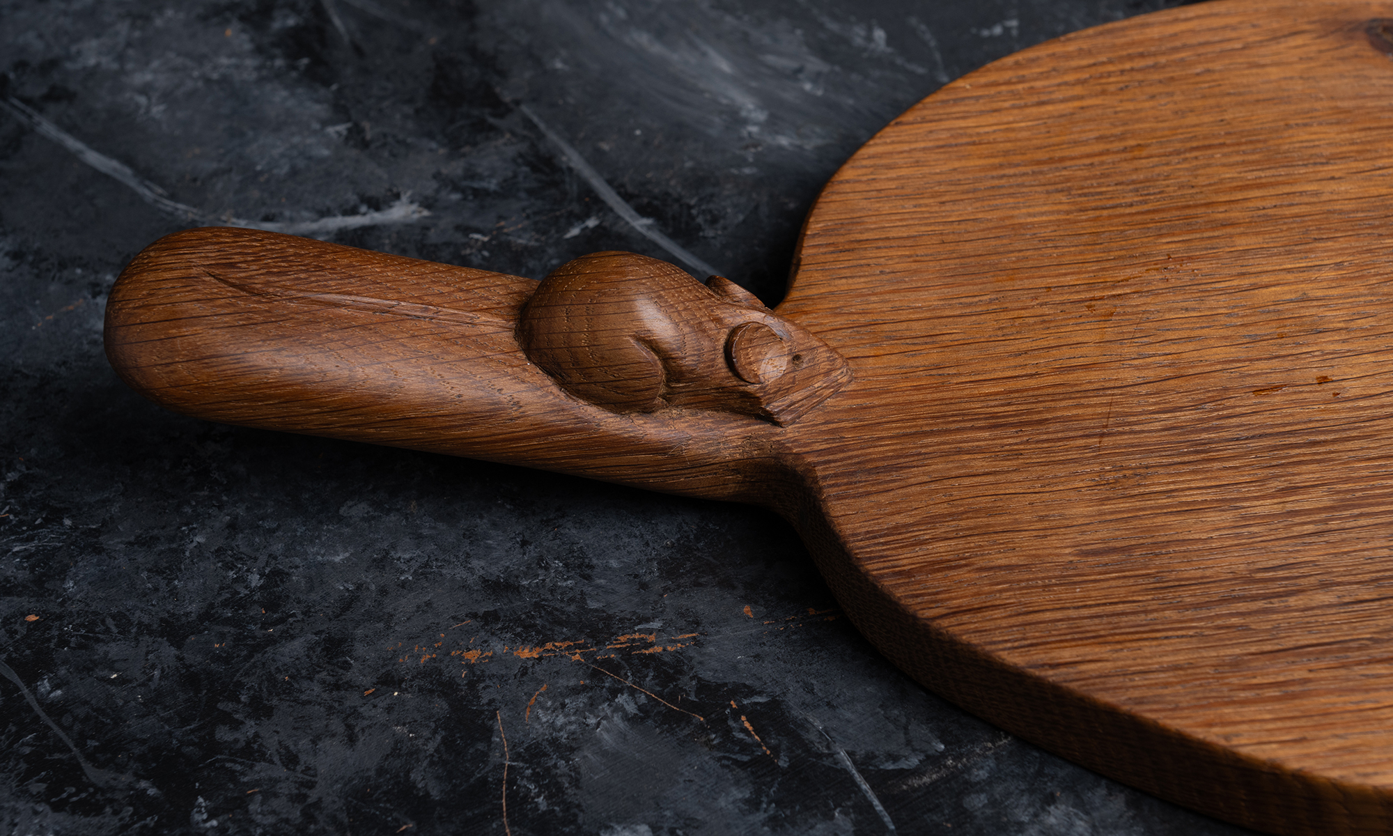 Hand carved oak cutting or cheese board, by Robert "Mouseman" Thompson studios.