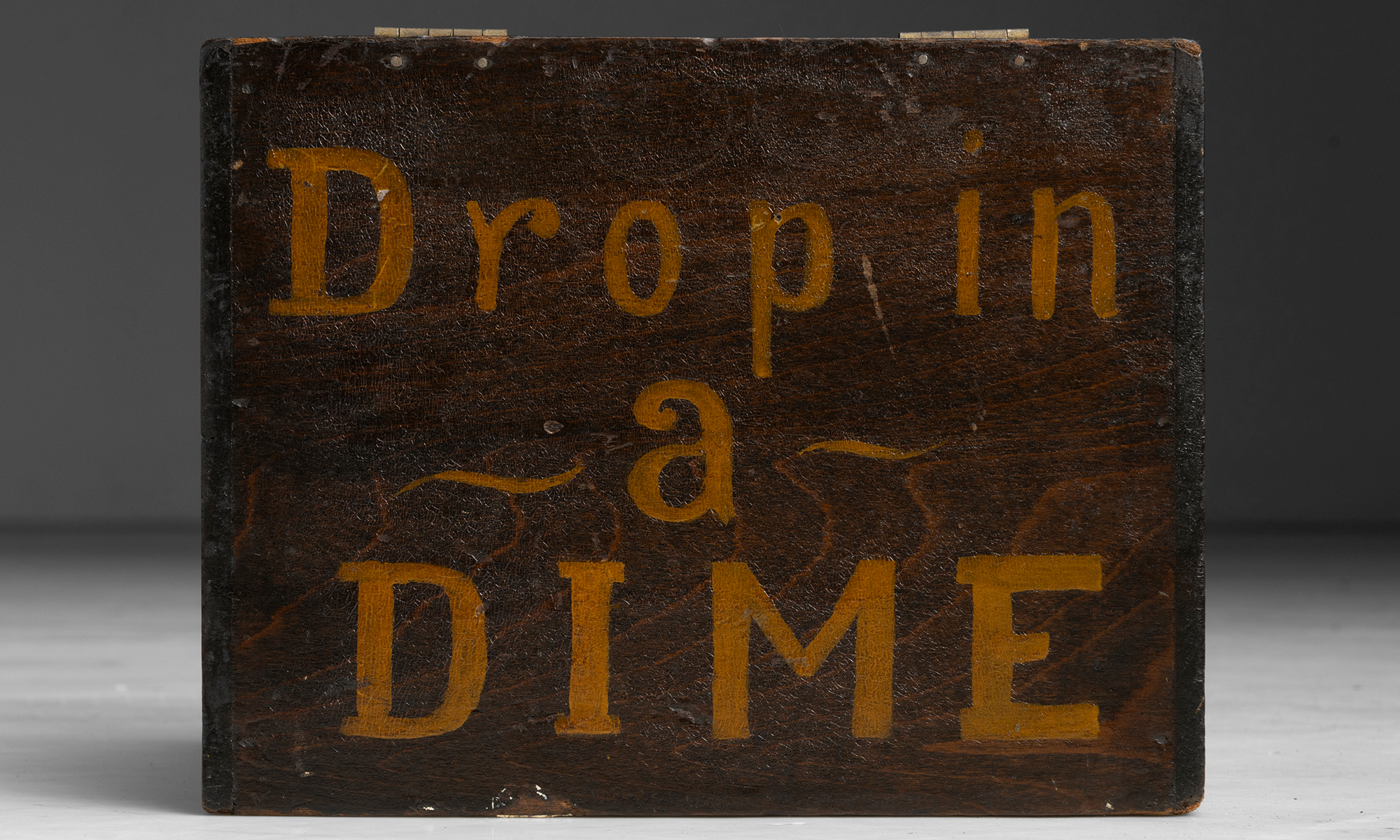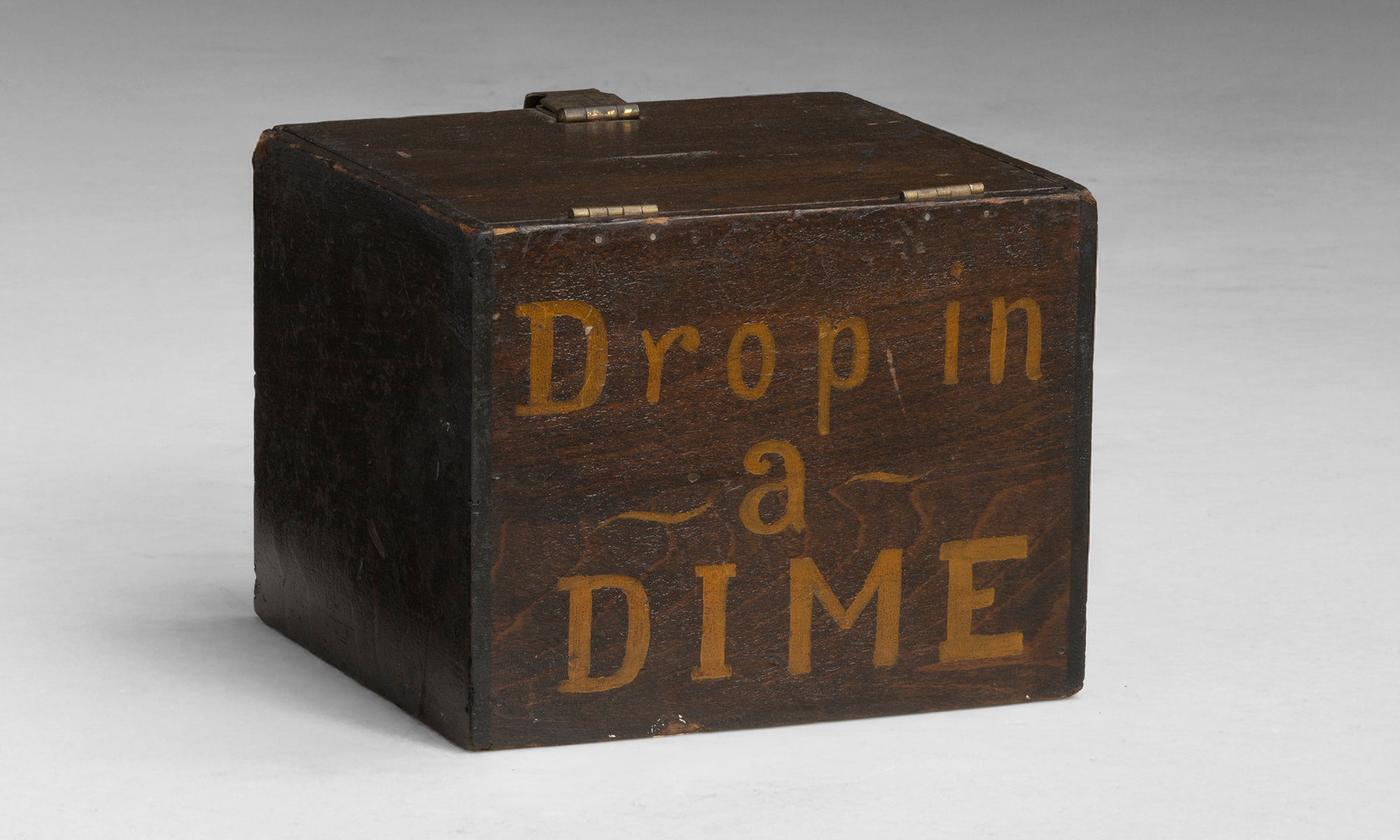 Hand painted wood "Drop in a Dime" penalty box.