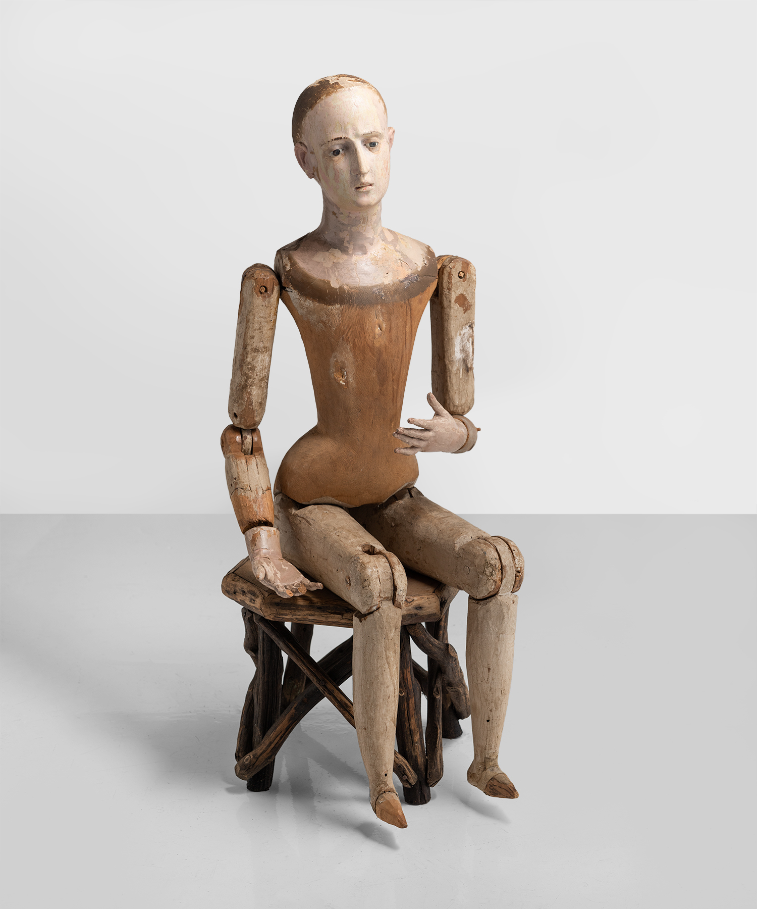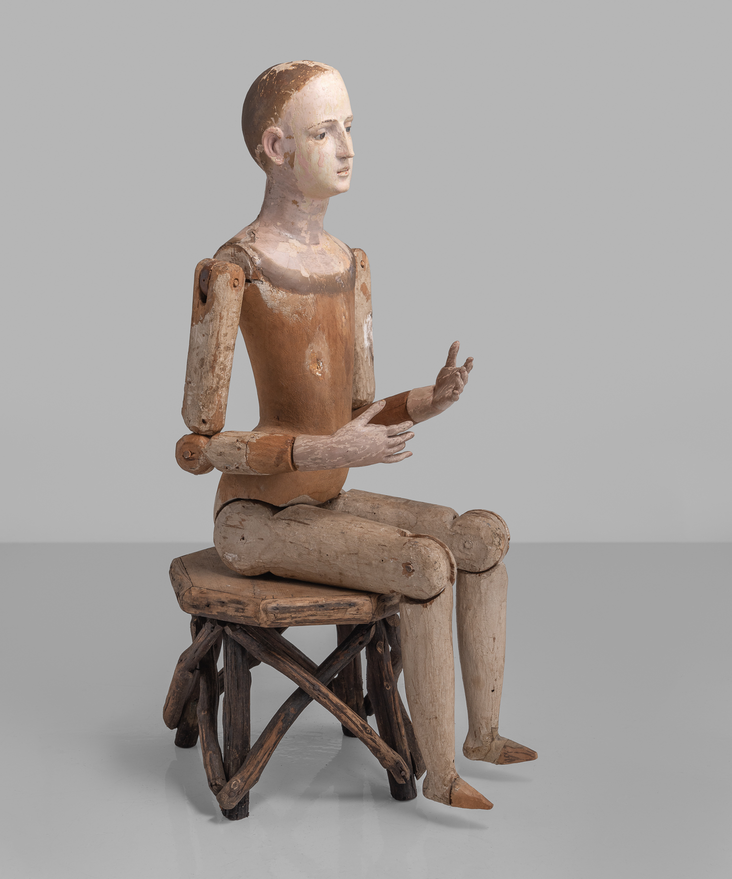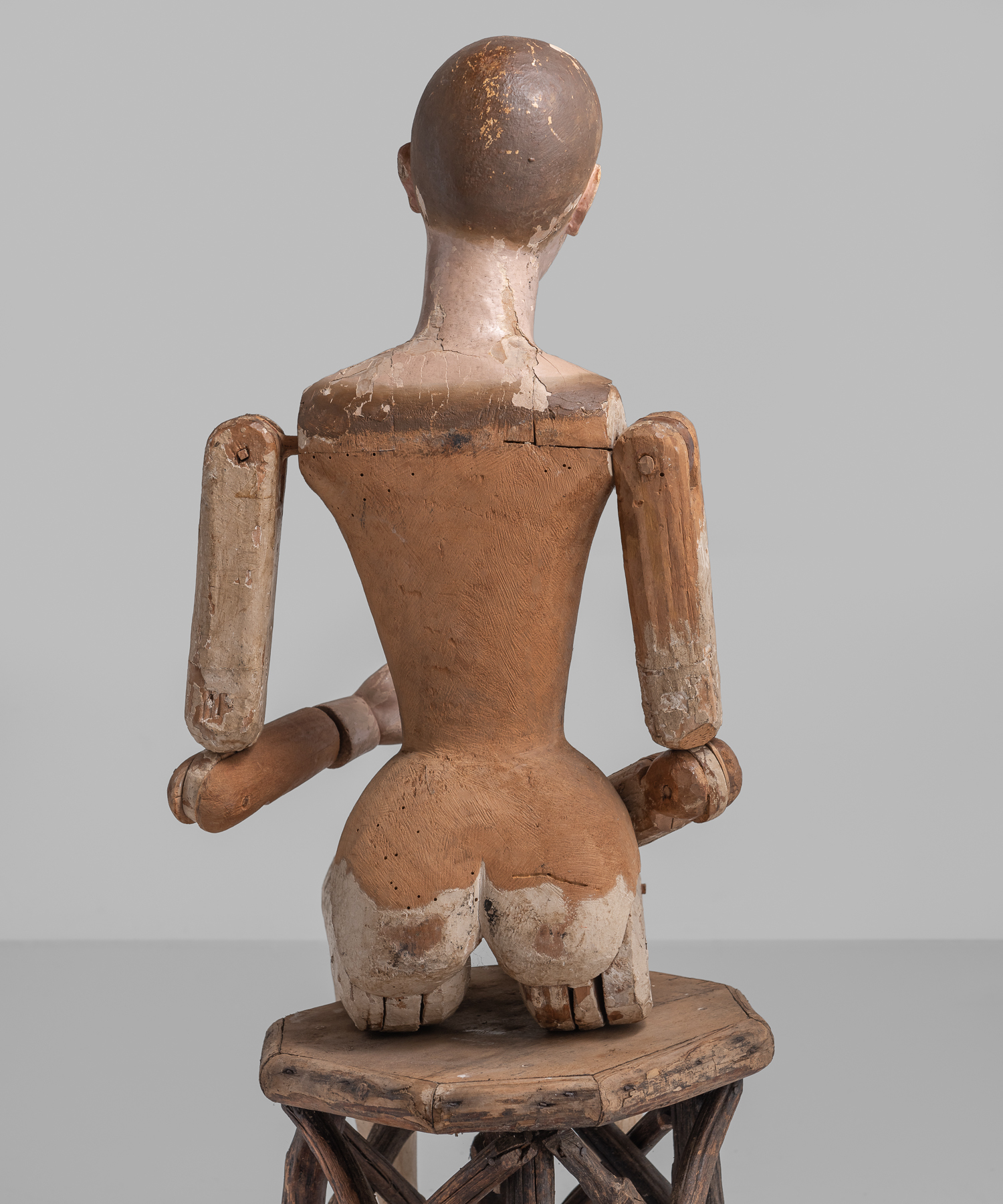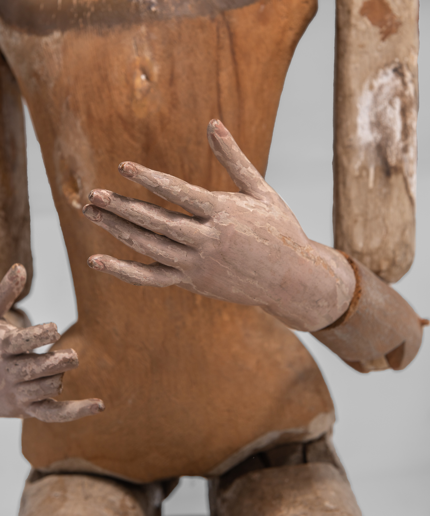 Stunning original patina, unusually large size, with beautifully painted hands and face.