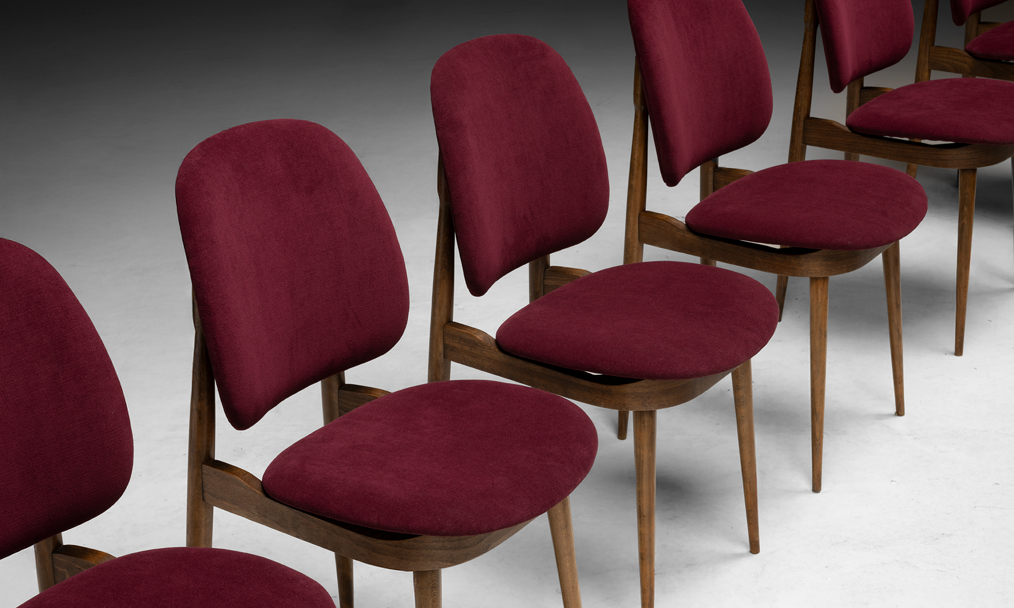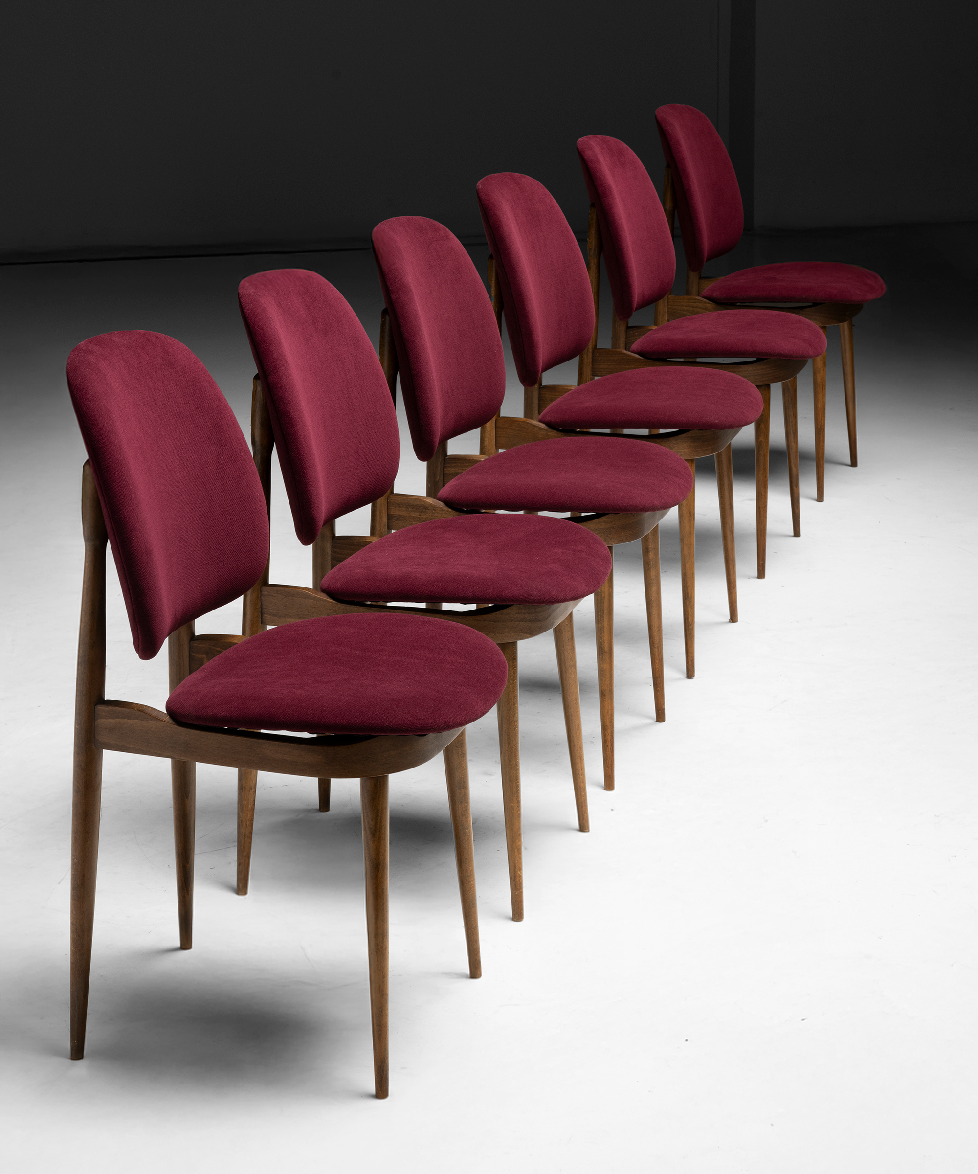 Set of 6 Pegasus chairs by Pierre Guariche, Originally created for Le Corbusier site and manufactured by Baumann, newly upholstered in Knoll fabric.