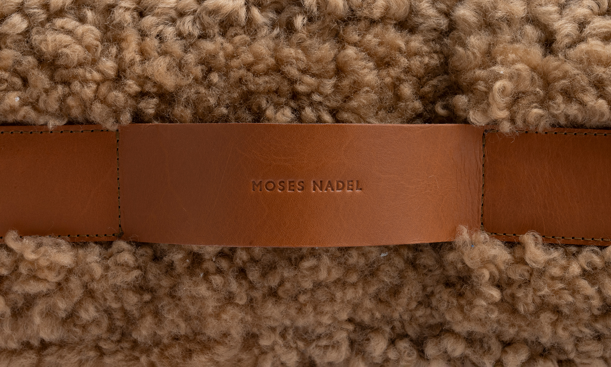 By Moses Nadel, in "Deer" Curly Shearling with Ojai Leather strap. 4-6 Week Production Time.