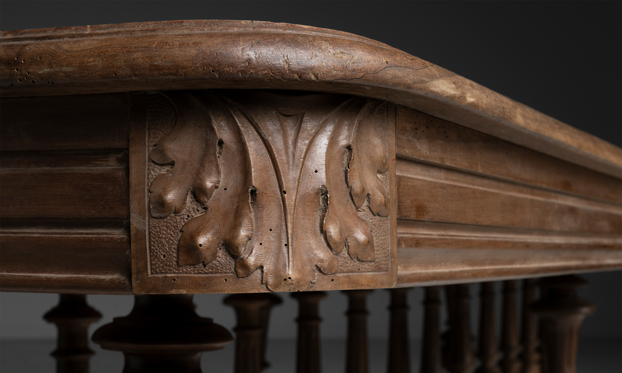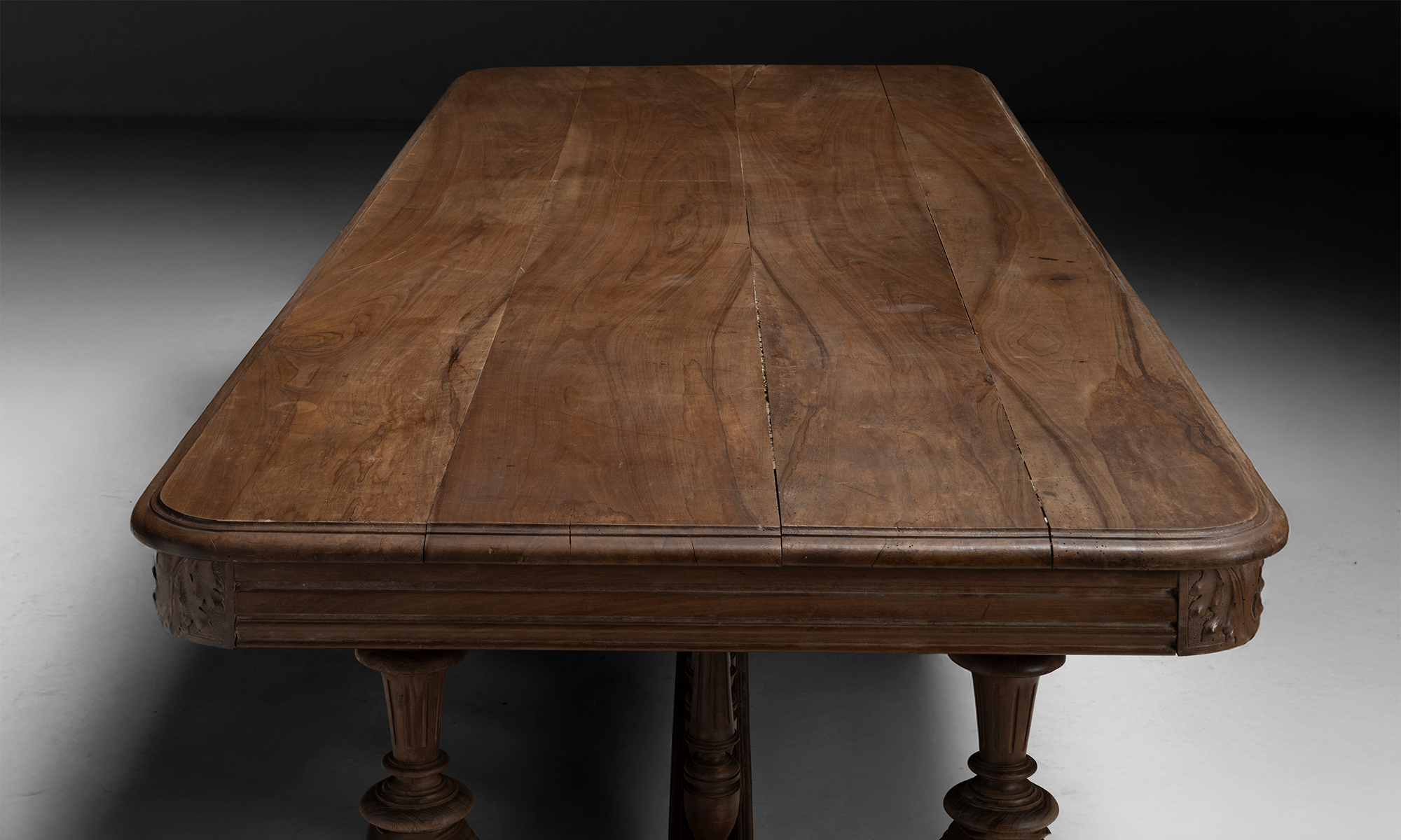 Four panel tabletop with moulded edge, and carved decorative leaf in each corner.